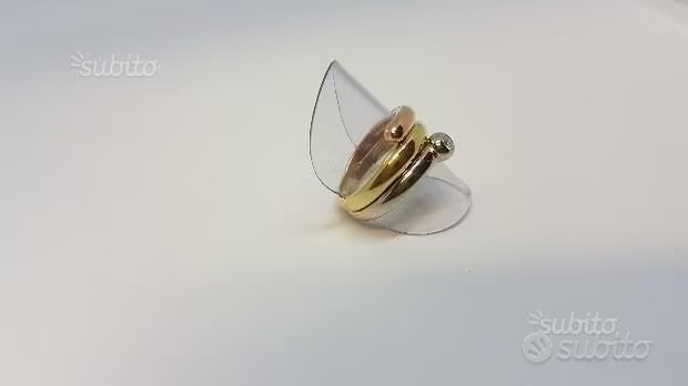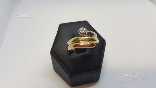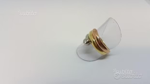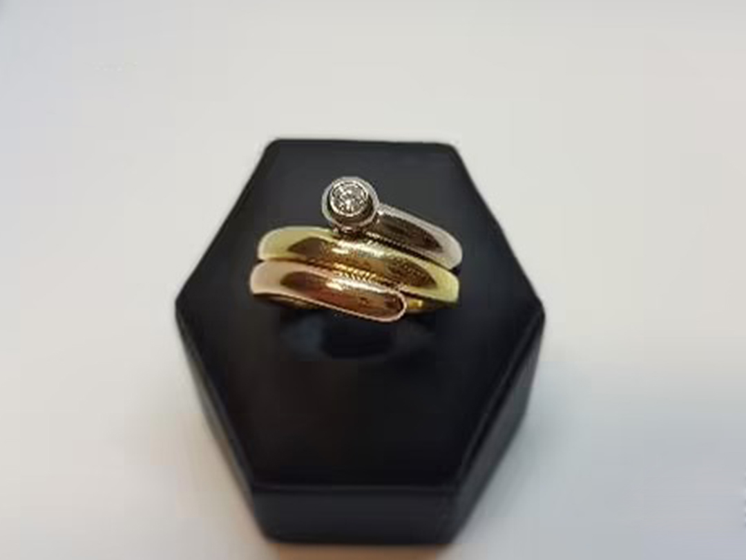 Anello 3 fasce Oro Giallo, Bianco e Rosa e Diamante