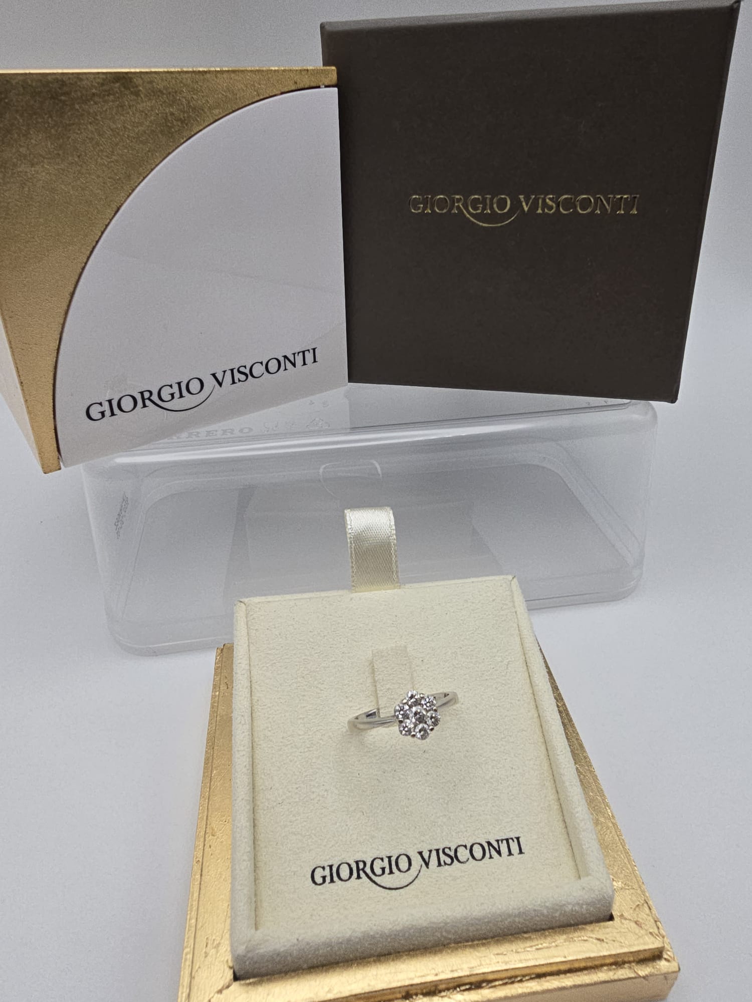 Anello Fiorellino in Oro Bianco 18 Kt e Diamanti firmato Giorgio Visconti