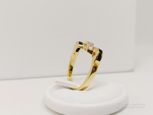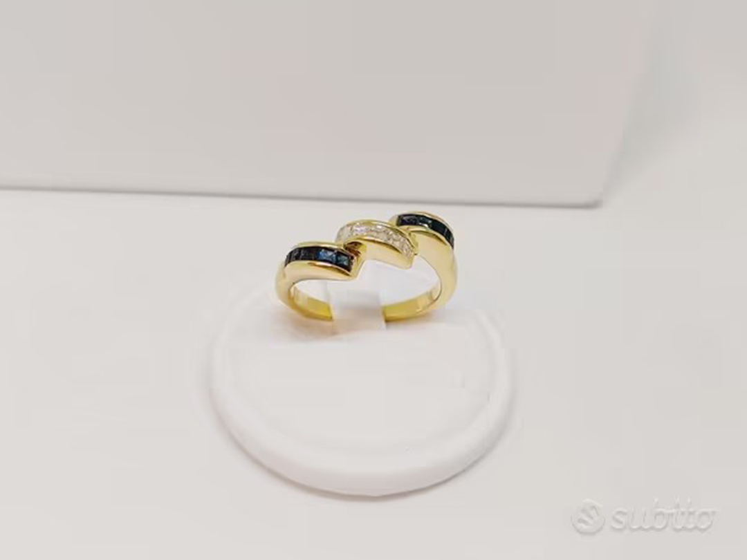 Anello in Oro Giallo 18kt con Diamanti e Zaffiri
