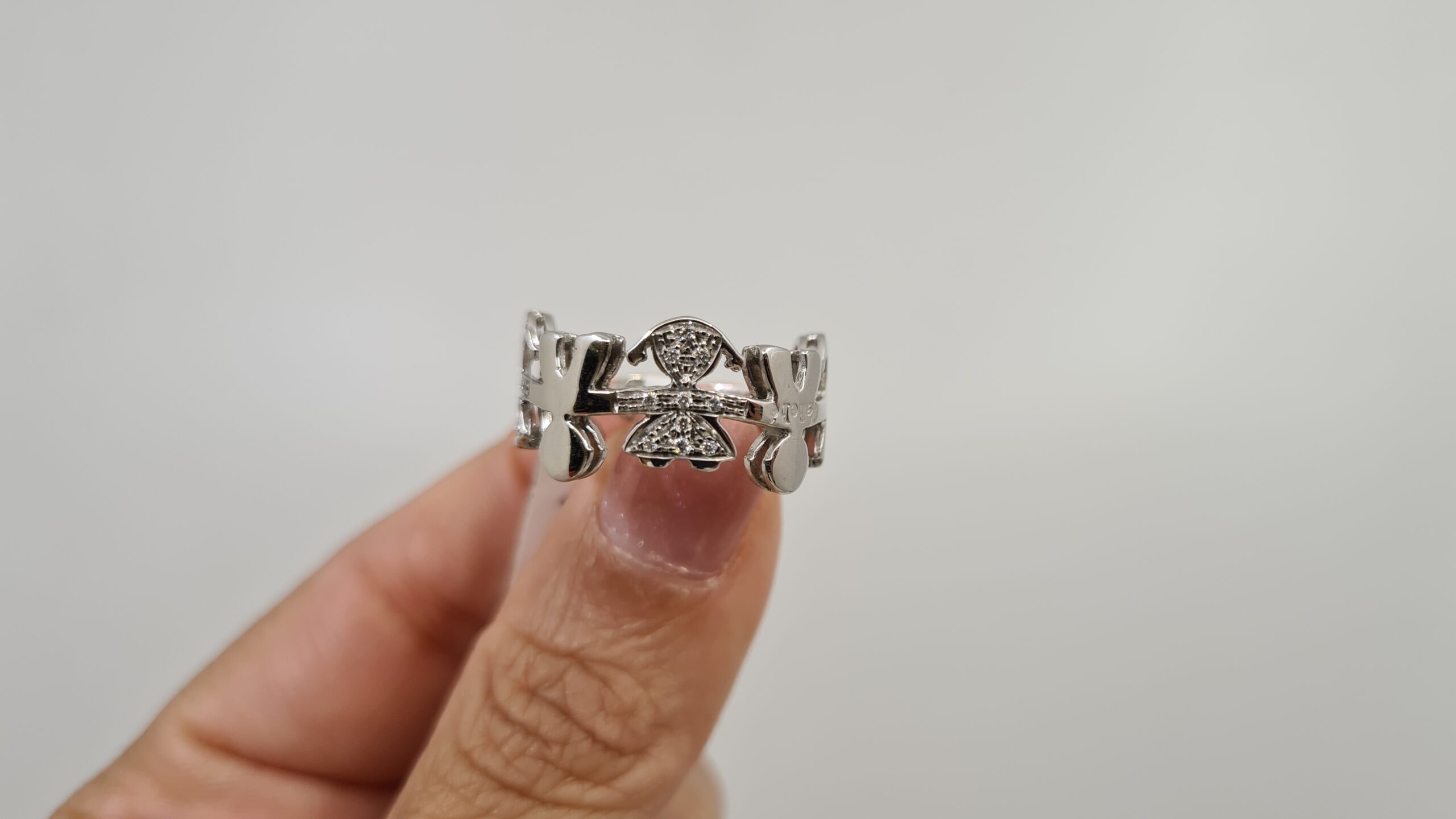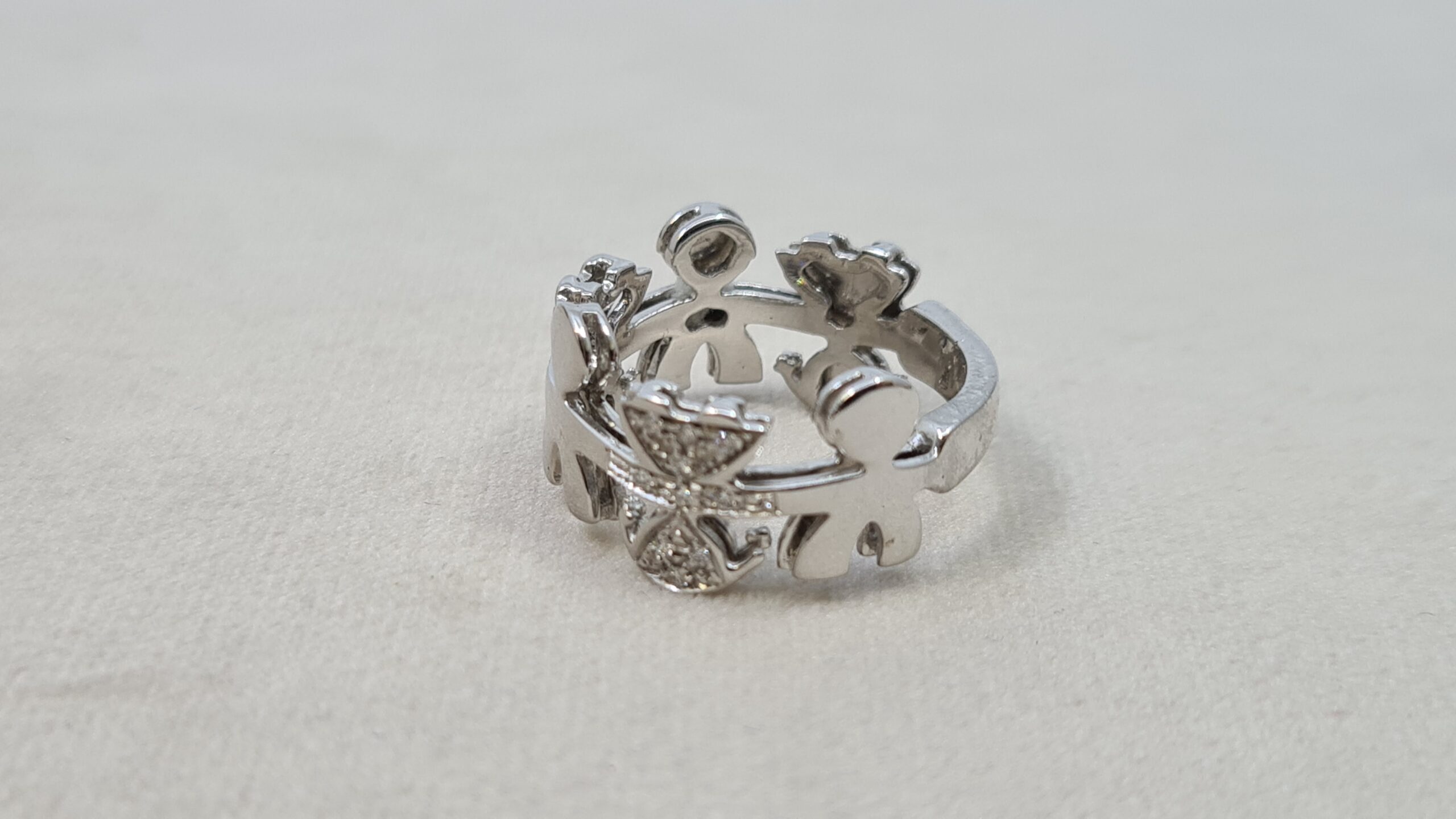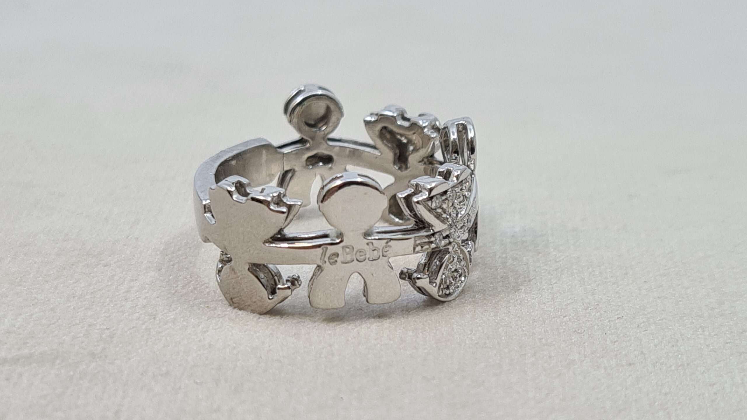 Anello firmato Le Bebè in Oro 18 kt RAFFIGURANTI bimbo e bimba in oro lucido e pavè diamanti.
