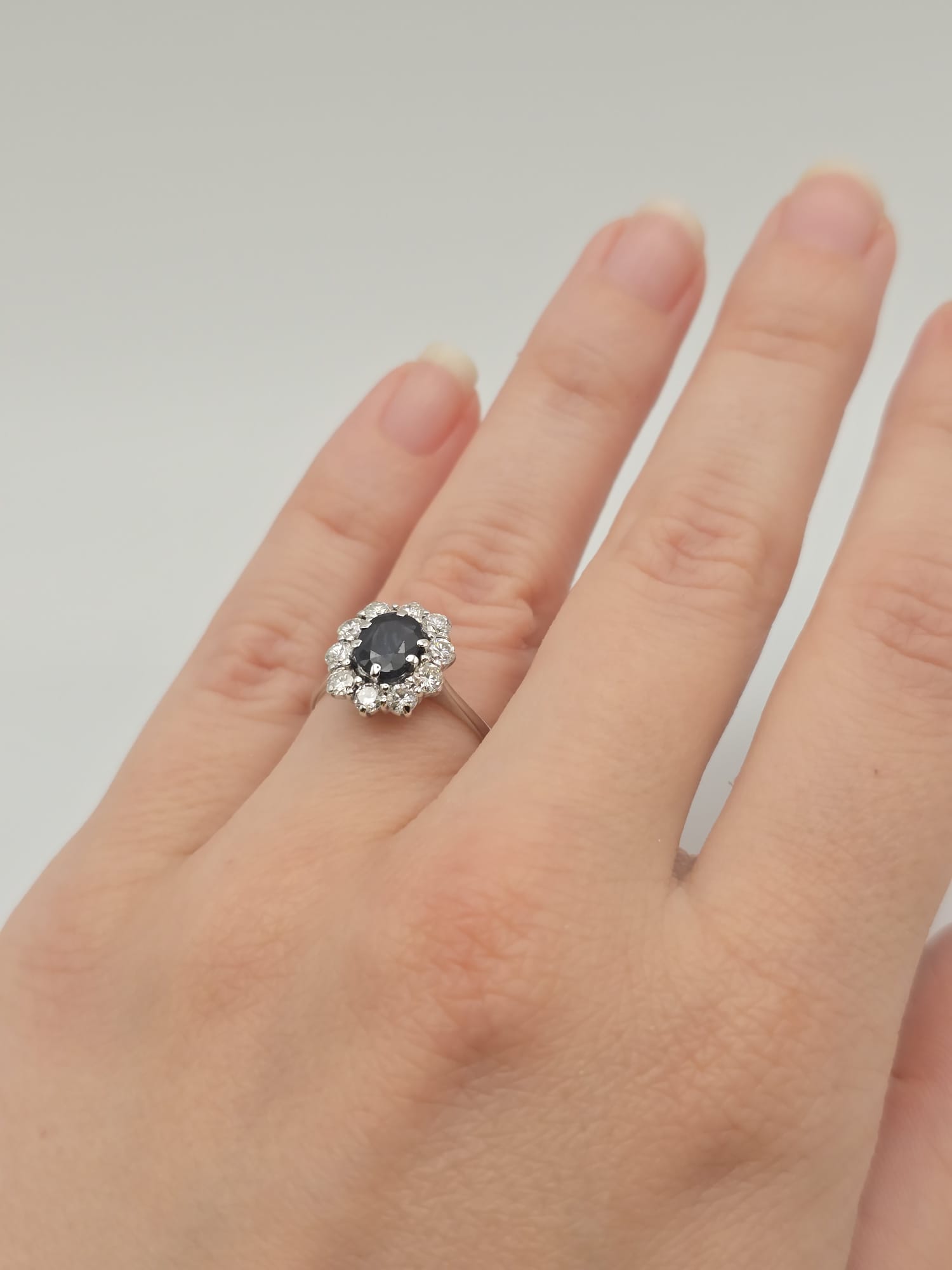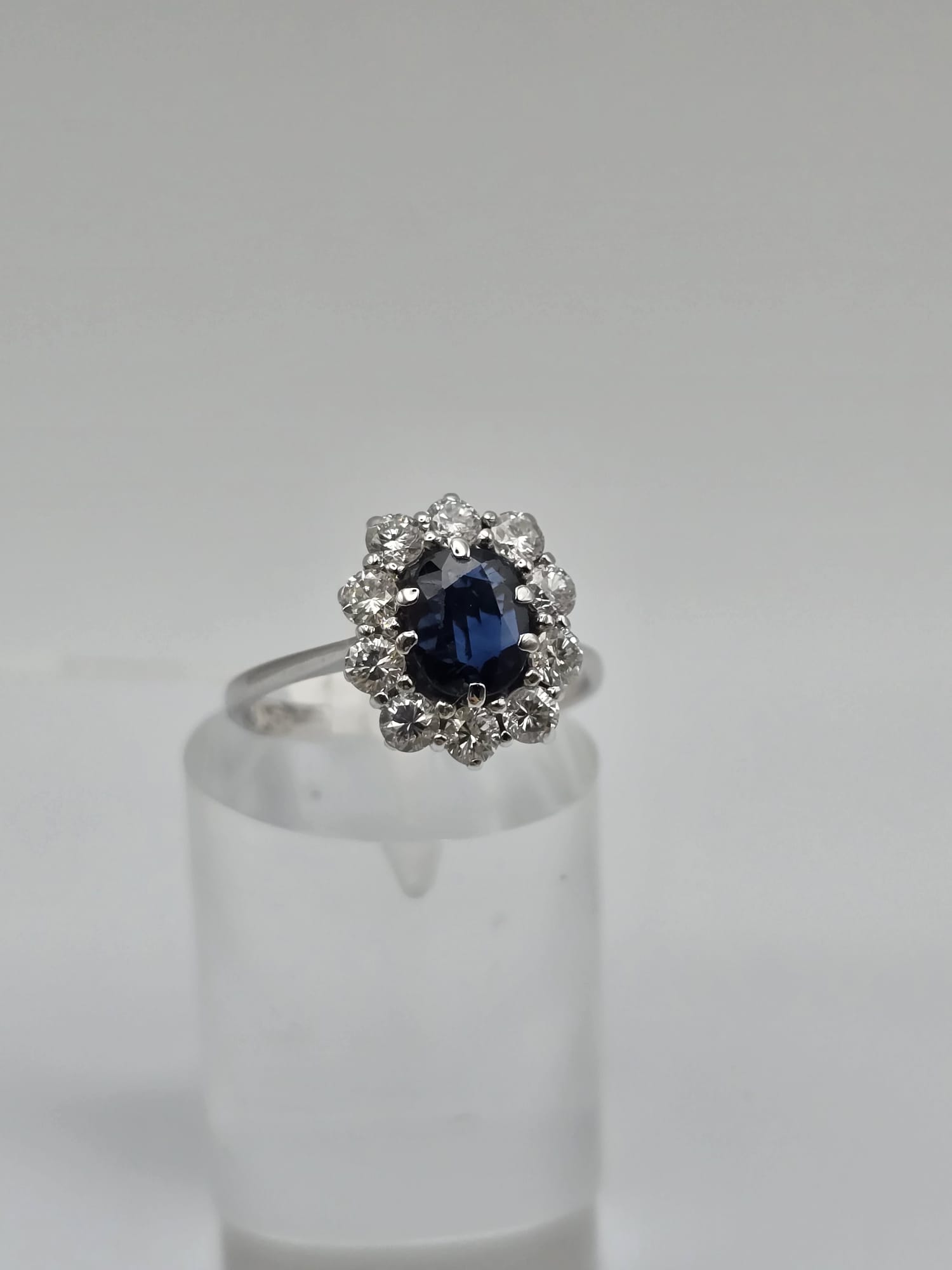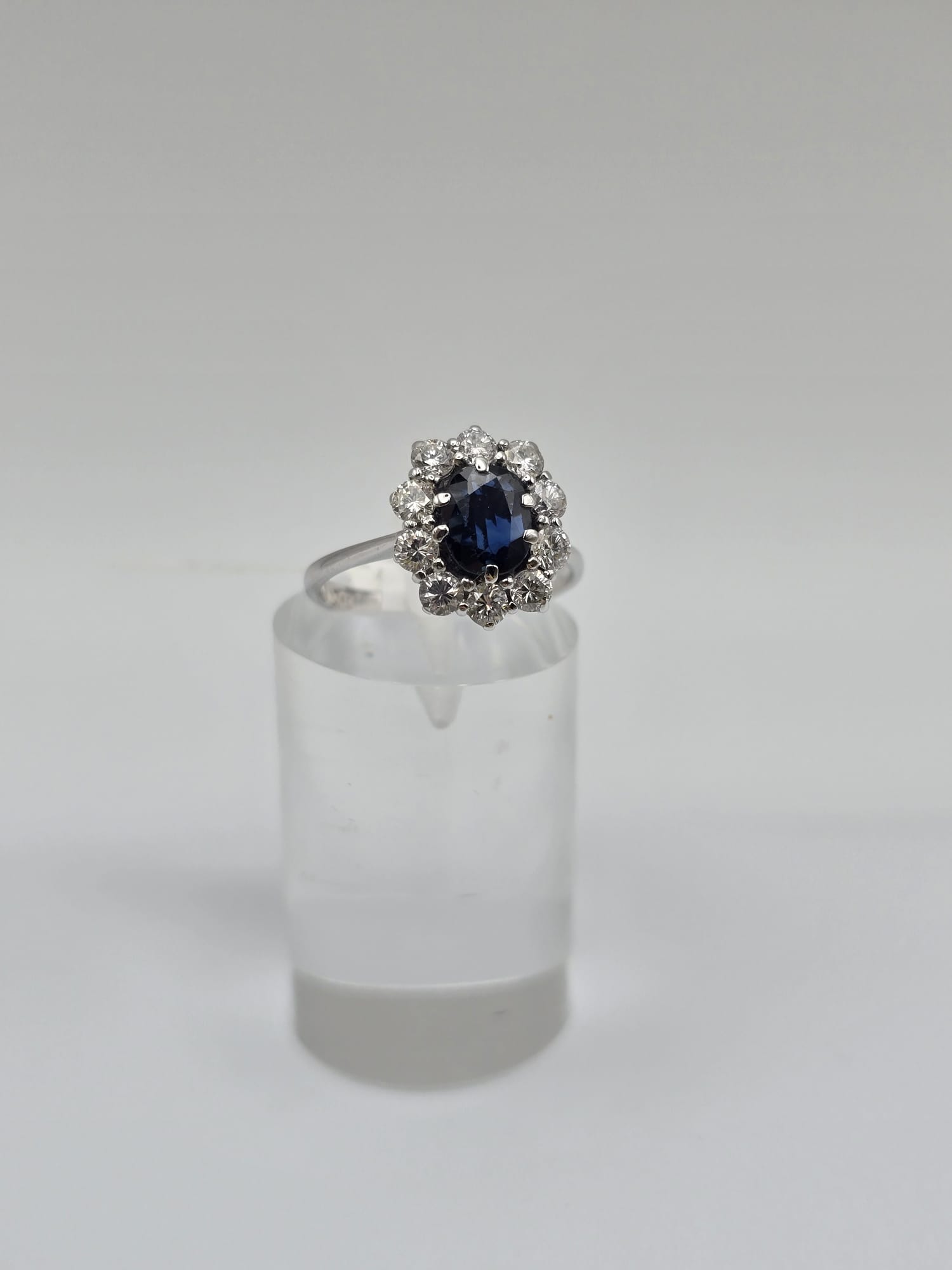 Anello Margherita con Zaffiro centrale 1.00 Ct e Diamanti Naturali 0.50 Ct G VS