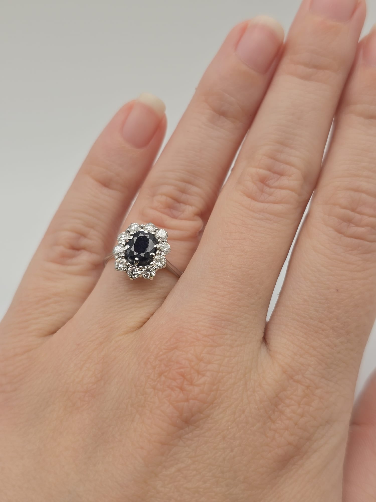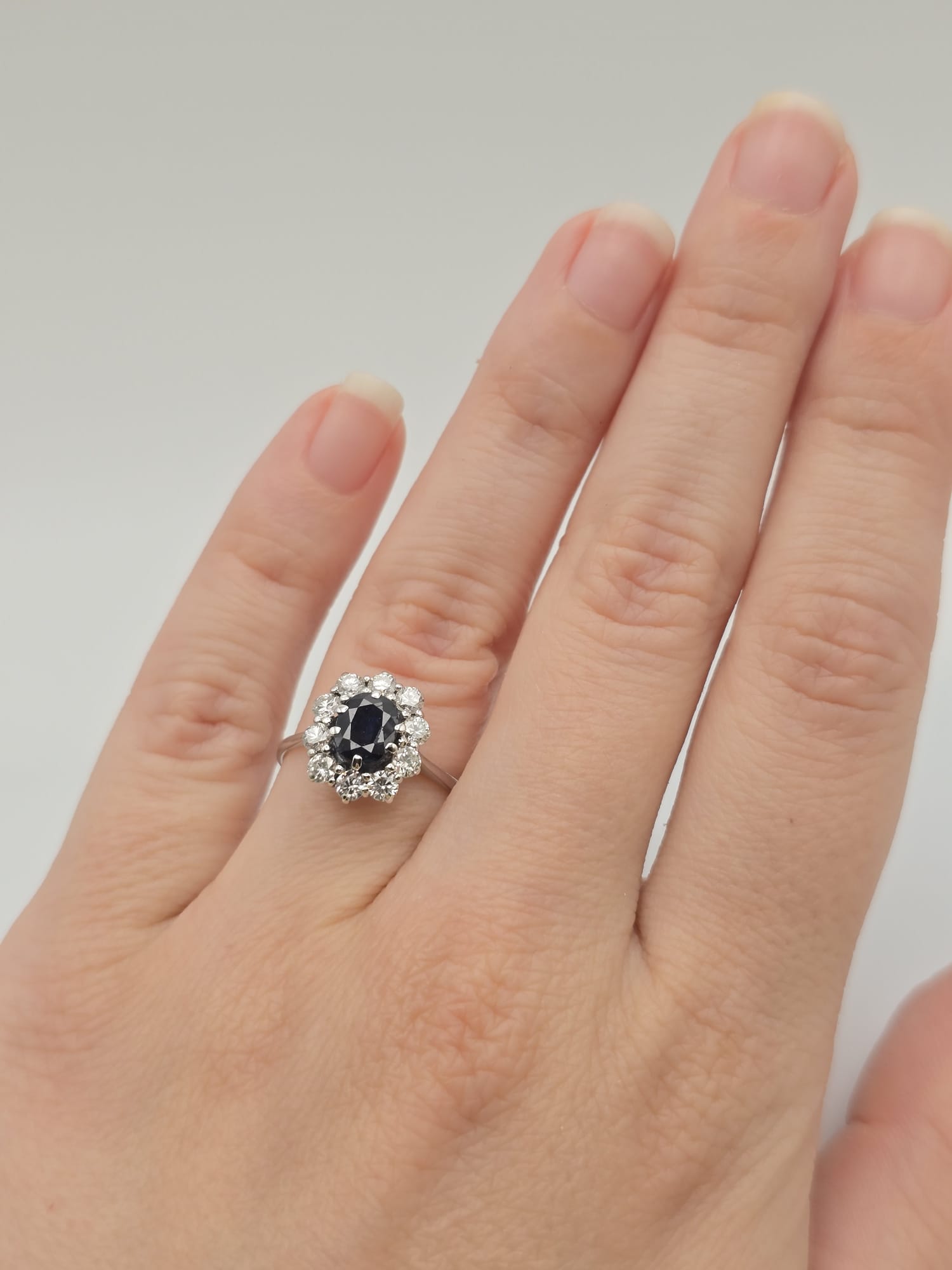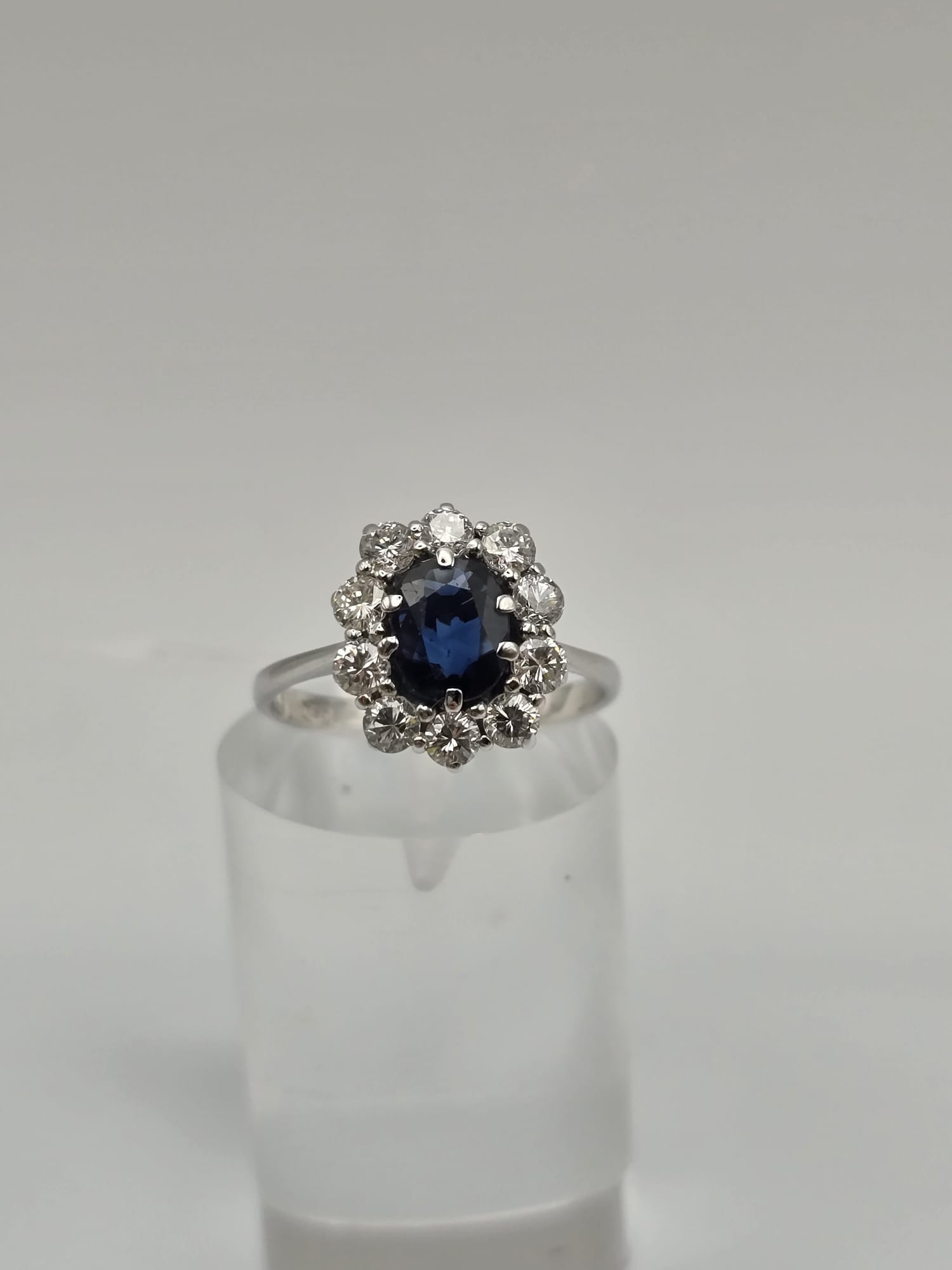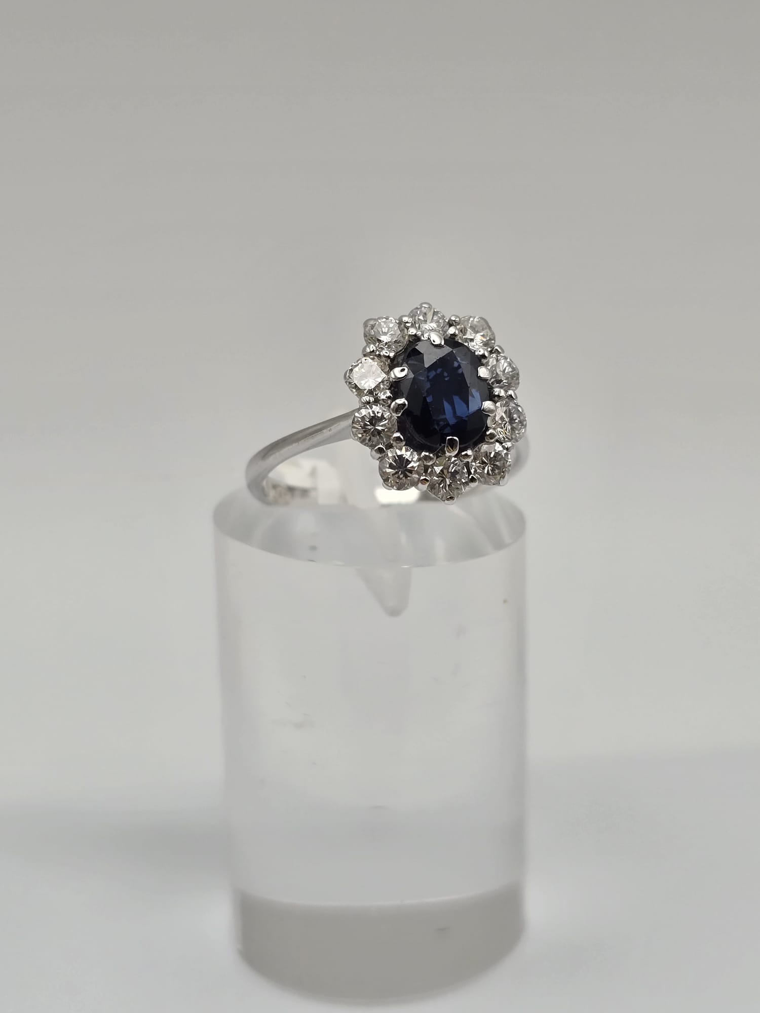 Anello Margherita con Zaffiro centrale 1.00 Ct e Diamanti Naturali 0.50 Ct G VS