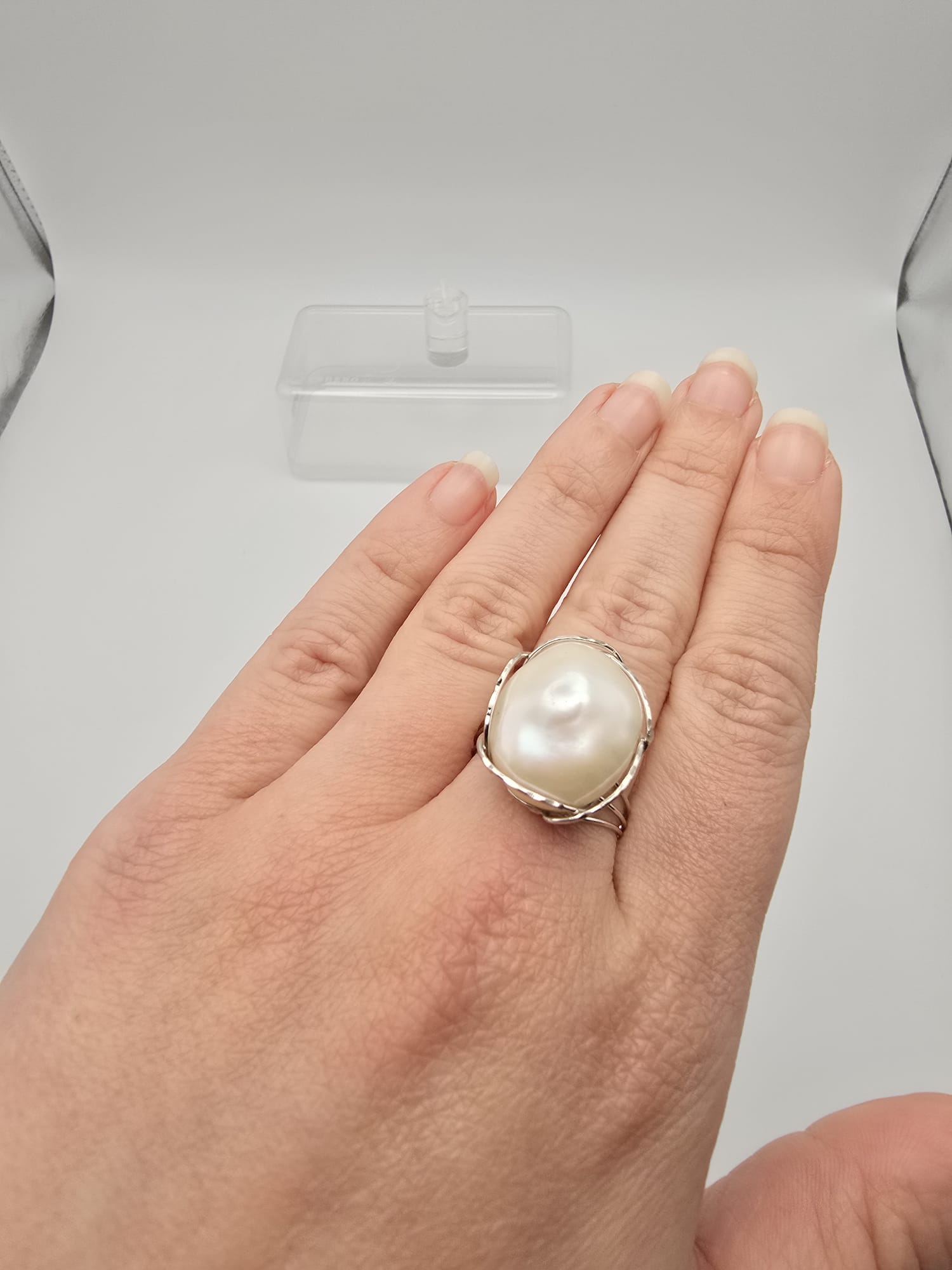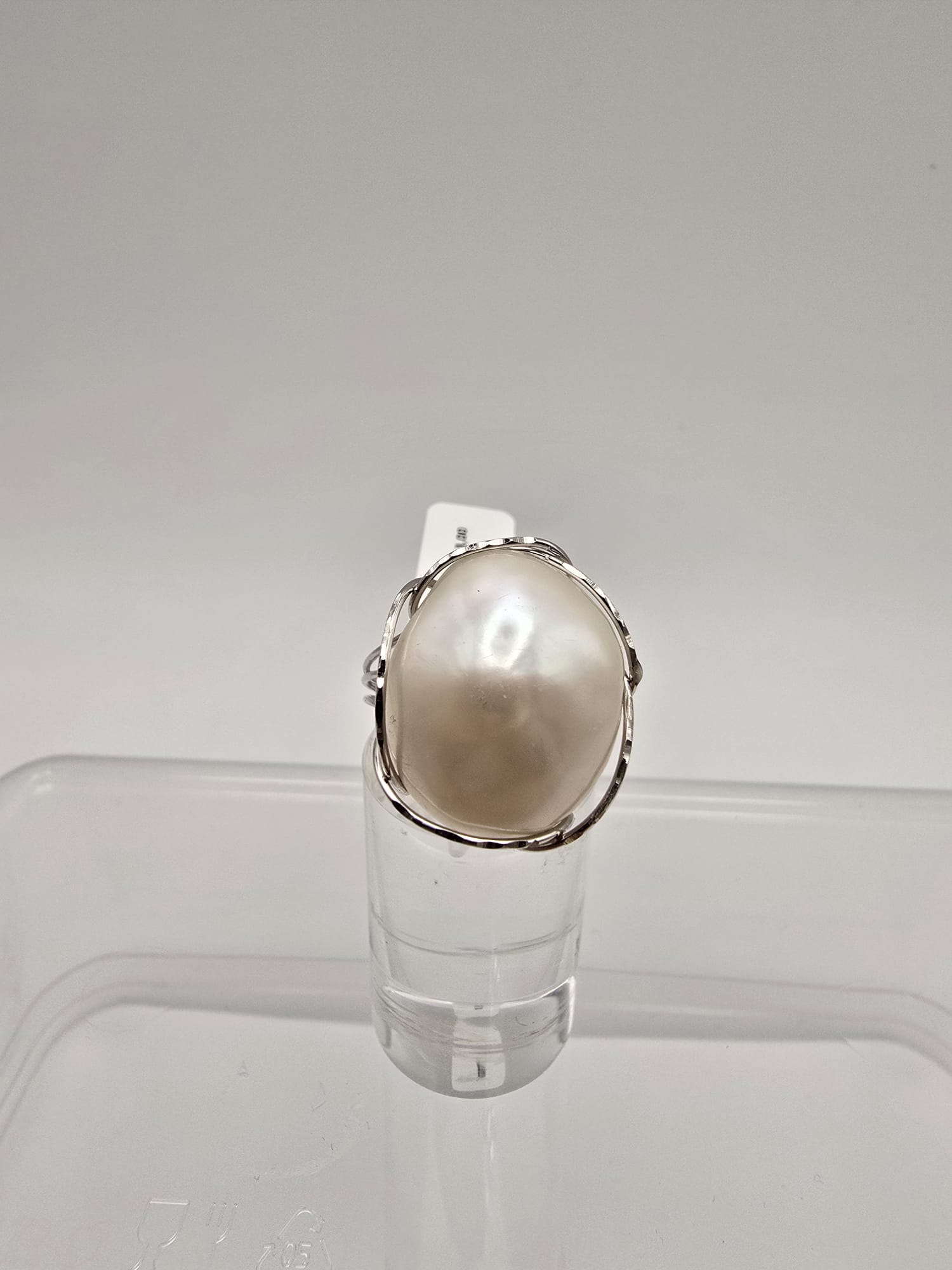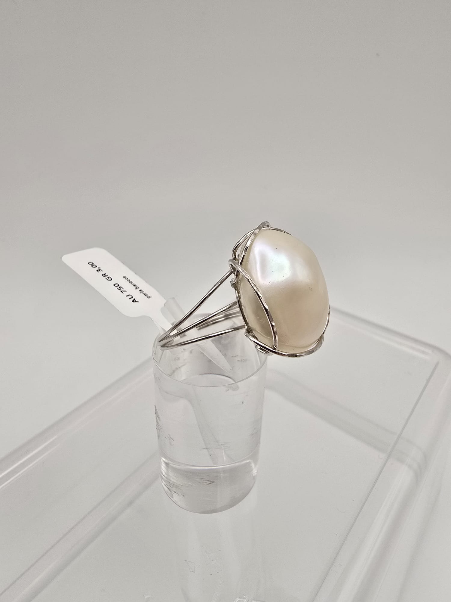 Importante anello di Oro Bianco 18 Kt con stupenda perla naturale Barocca.