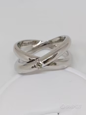 Esclusivo solitario a doppia veretta in oro bianco 750 con diamante naturale taglio rotondo brillante.