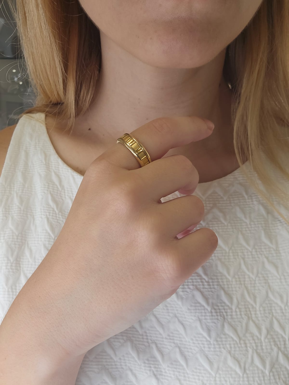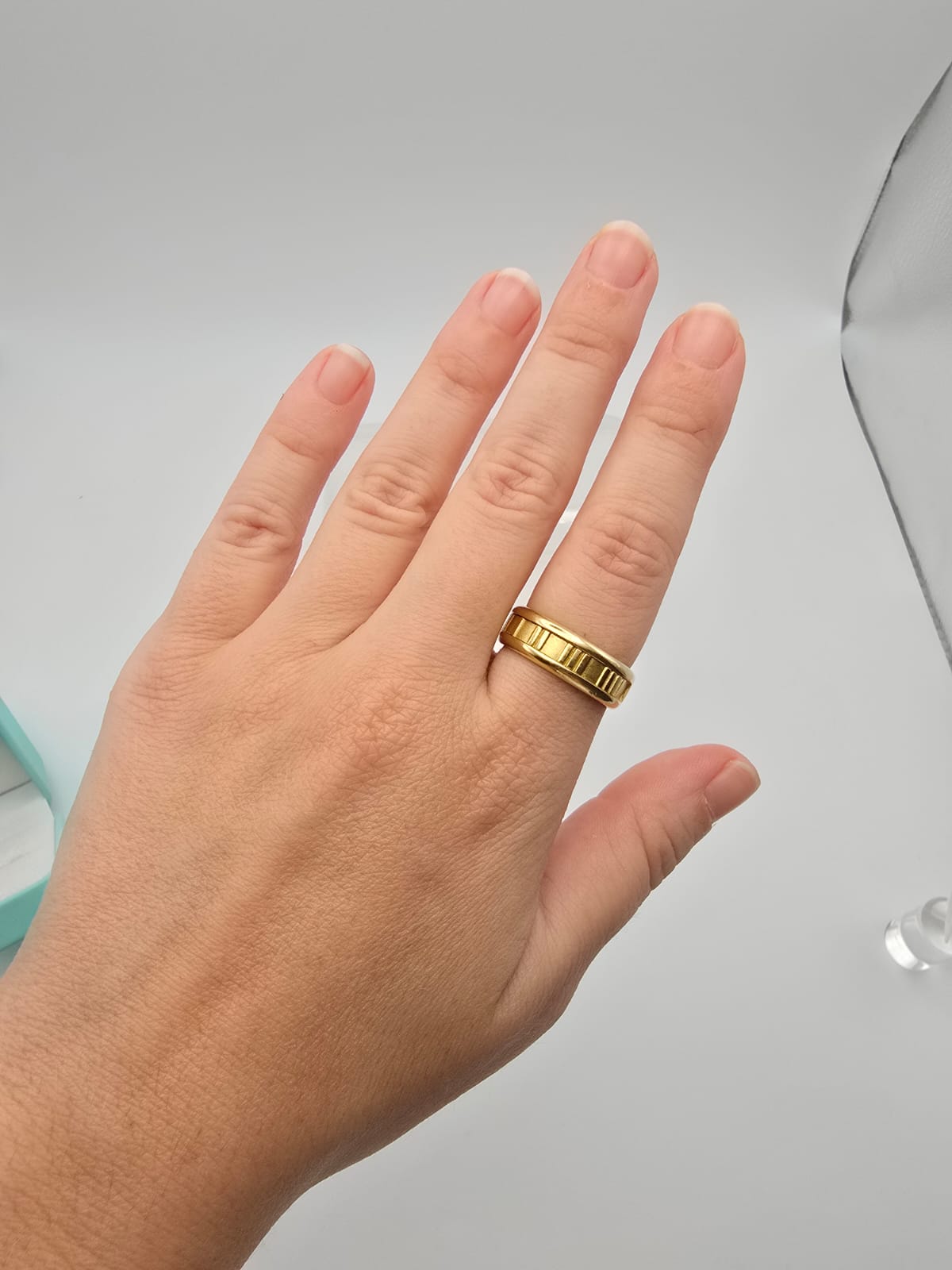 Anello in Oro Giallo Tiffany&Co della collezione Atlas, ispirato ai numeri romani del famoso orologio sulla facciata del flagship store di New York.