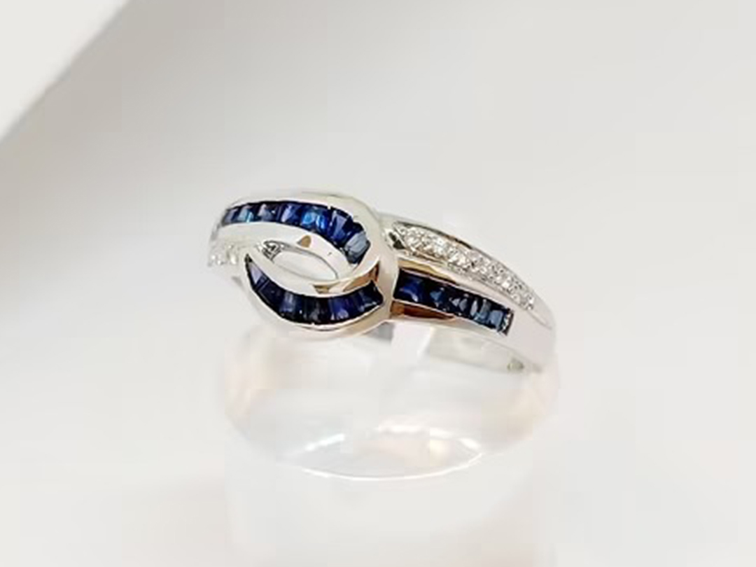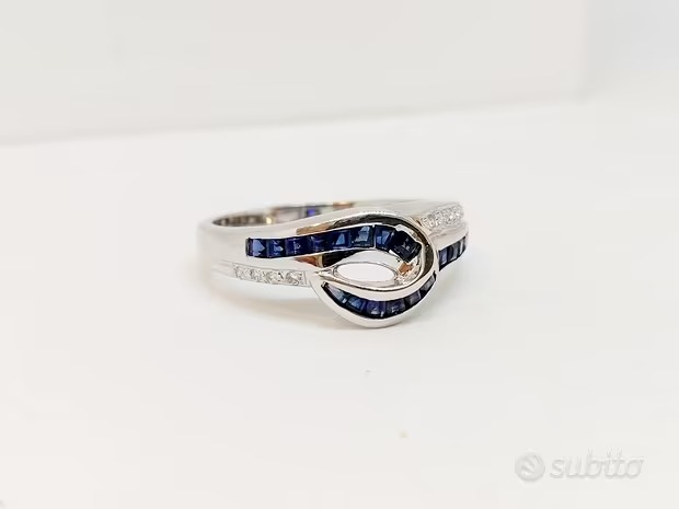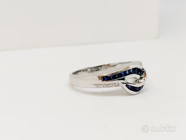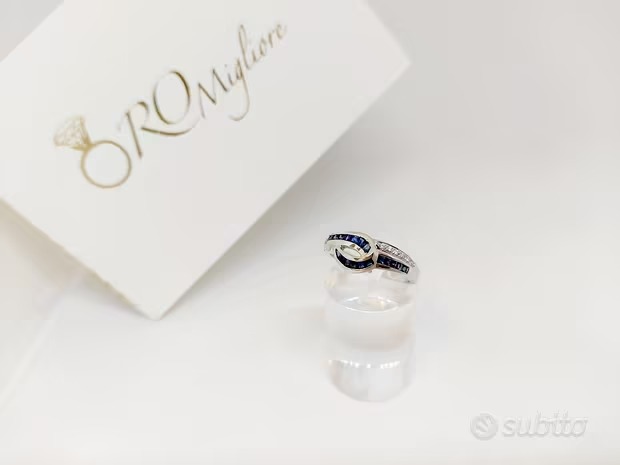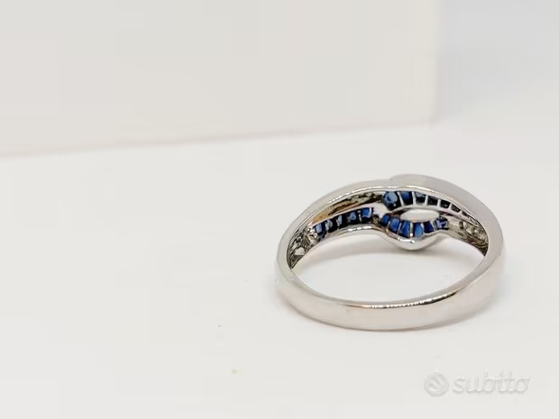 Anello Zaffiri 0,24 ct e pavé di Diamanti oro 18Kt