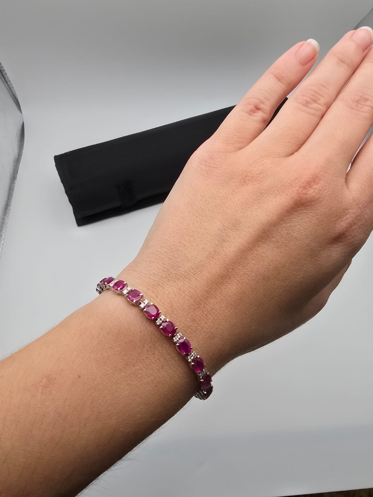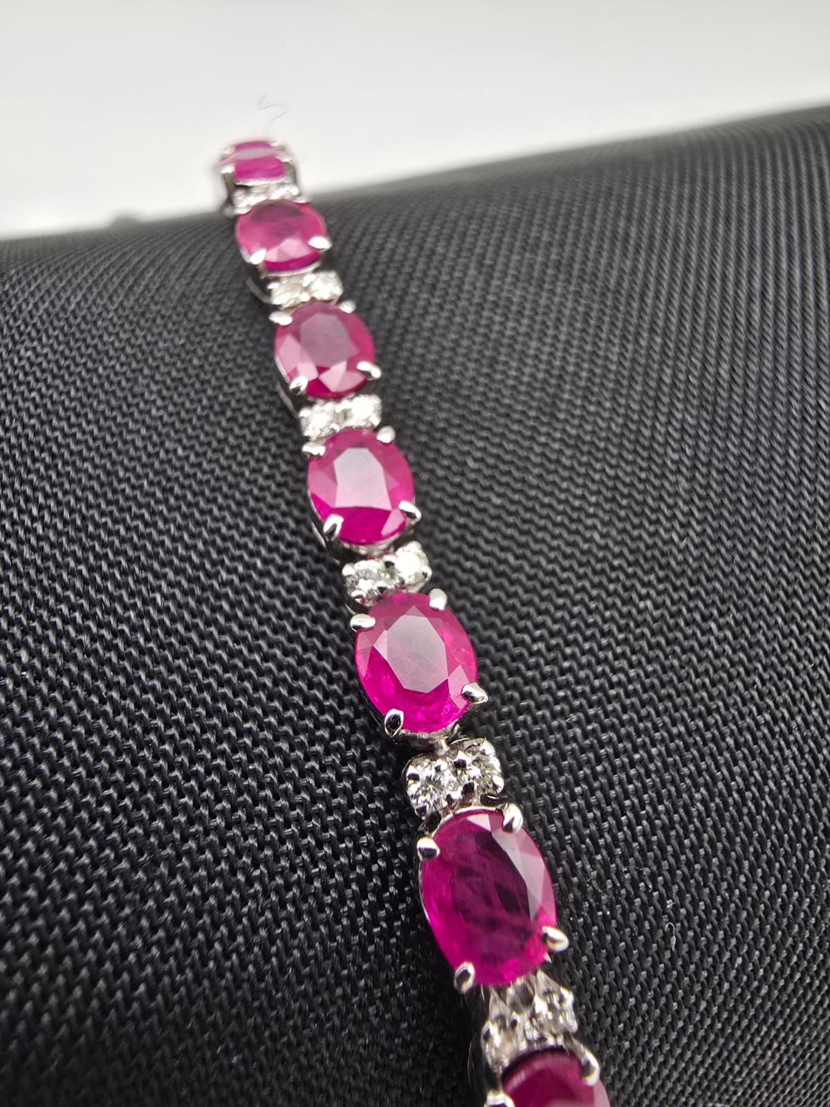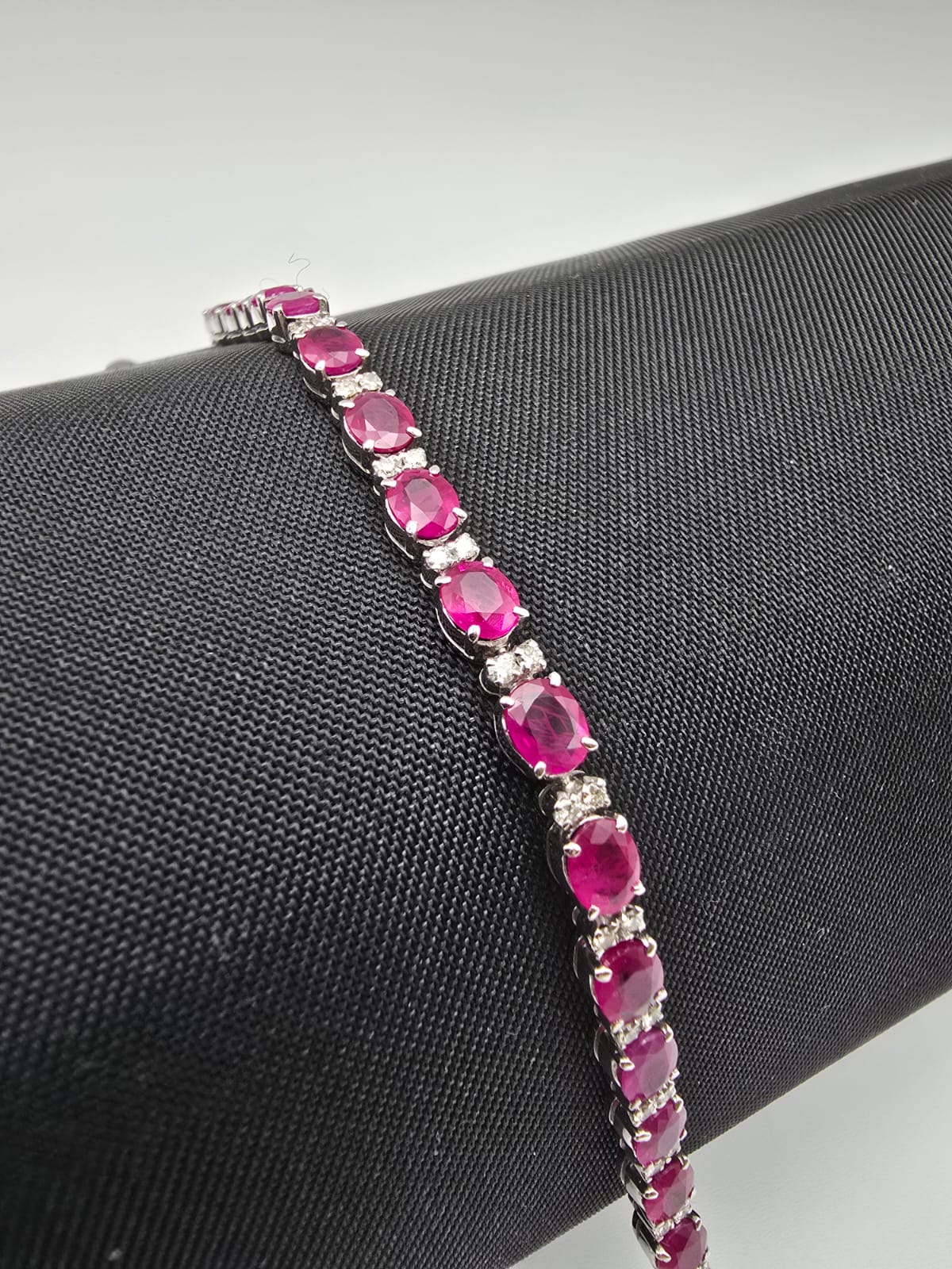 Bracciale Oro Bianco 18 Kt con Rubini 8.30 Ct e Diamanti Pavè