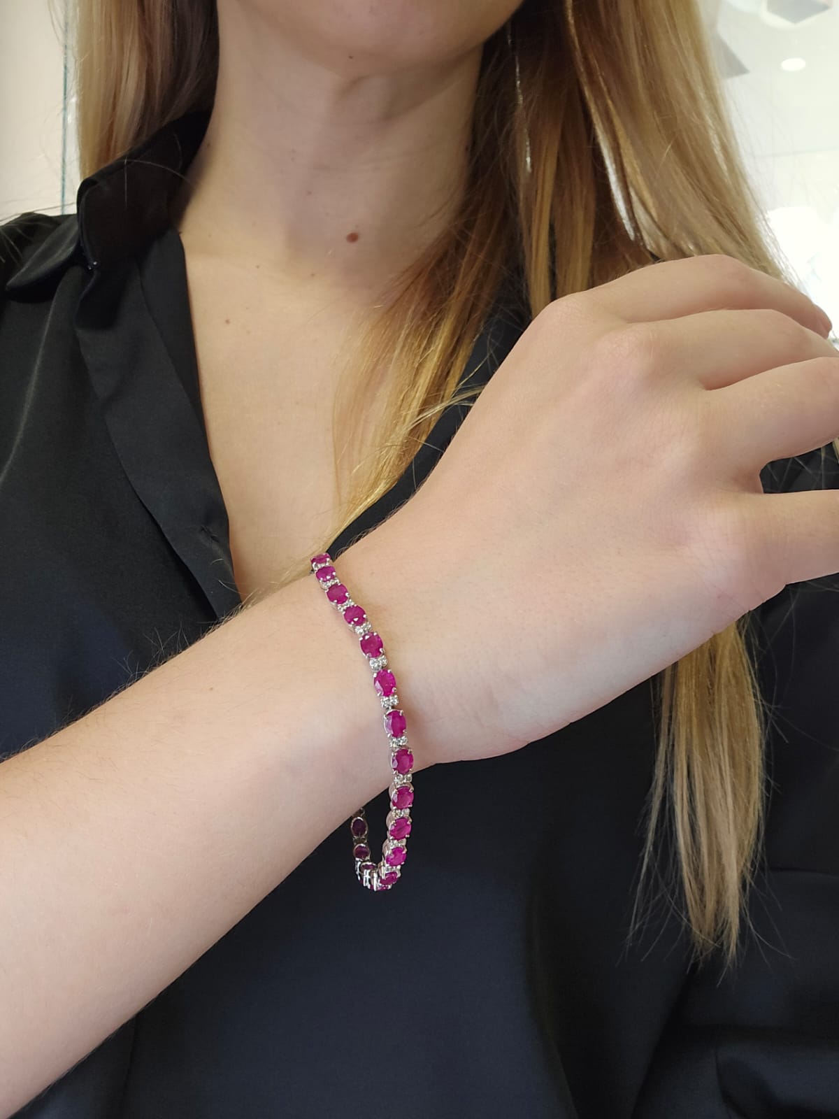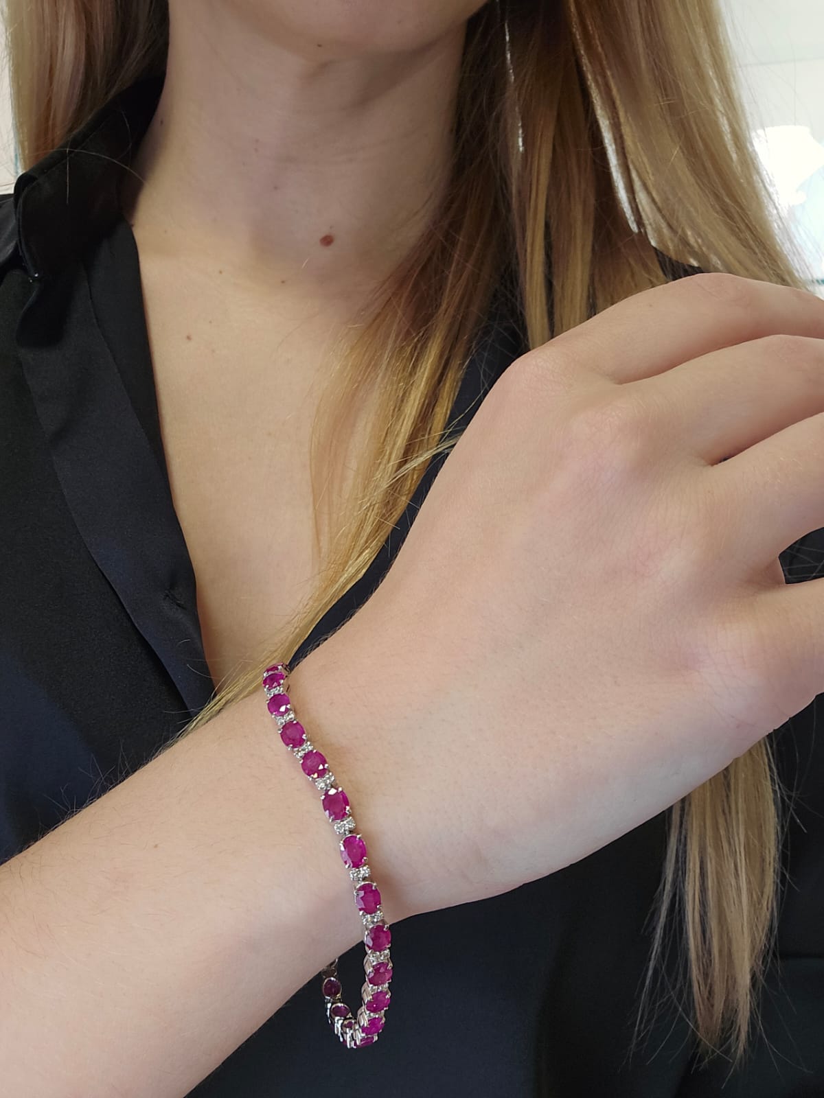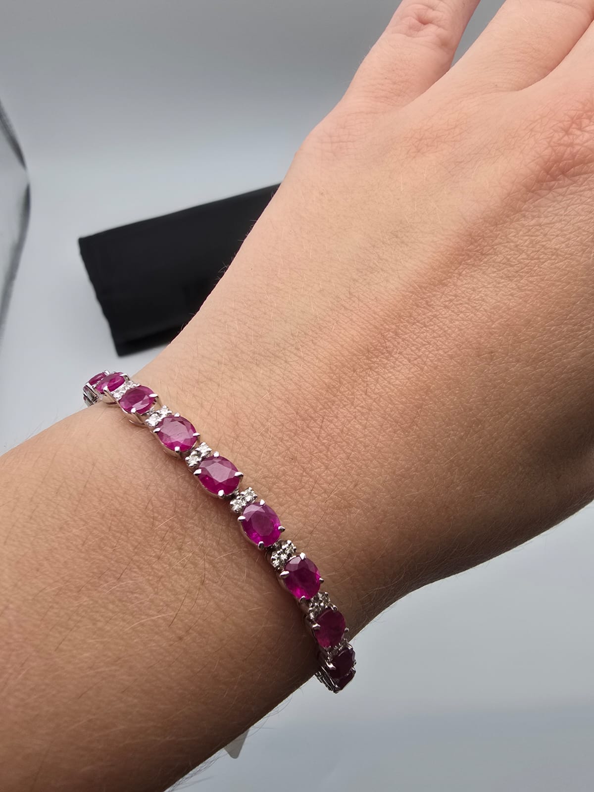 Bracciale Oro Bianco 18 Kt con Rubini 8.30 Ct e Diamanti Pavè