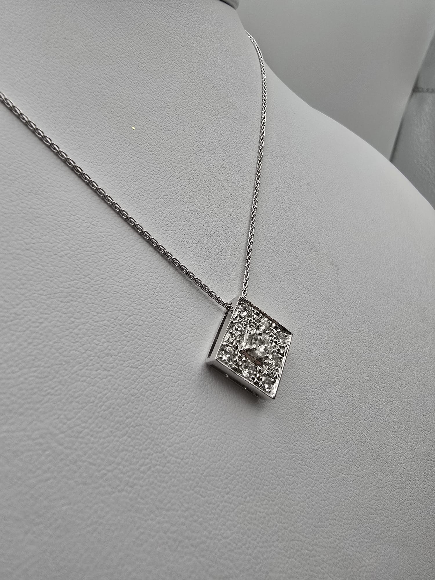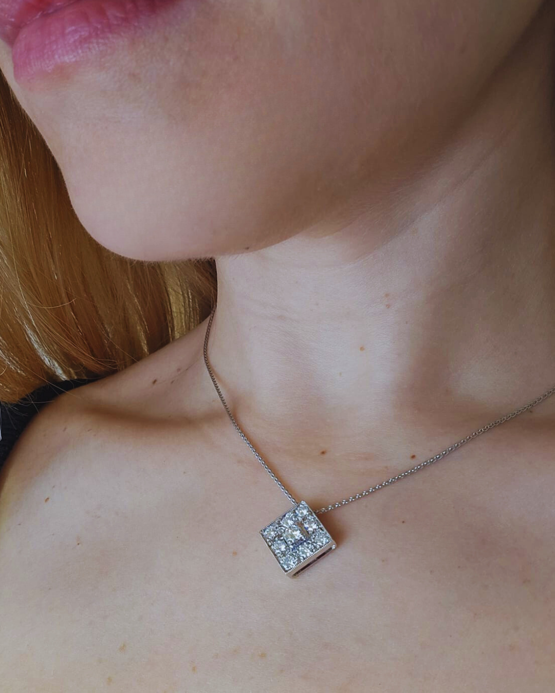 Collana con pendente in Oro Bianco 18 Kt e Diamanti Naturali. Elegante, preziosa, senza età.