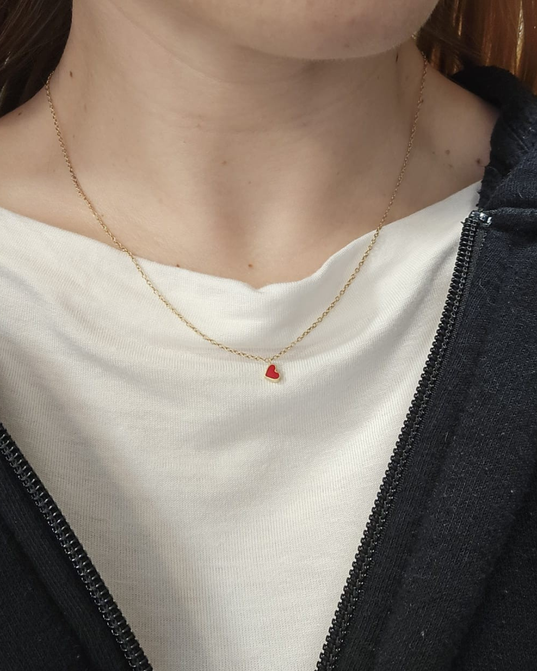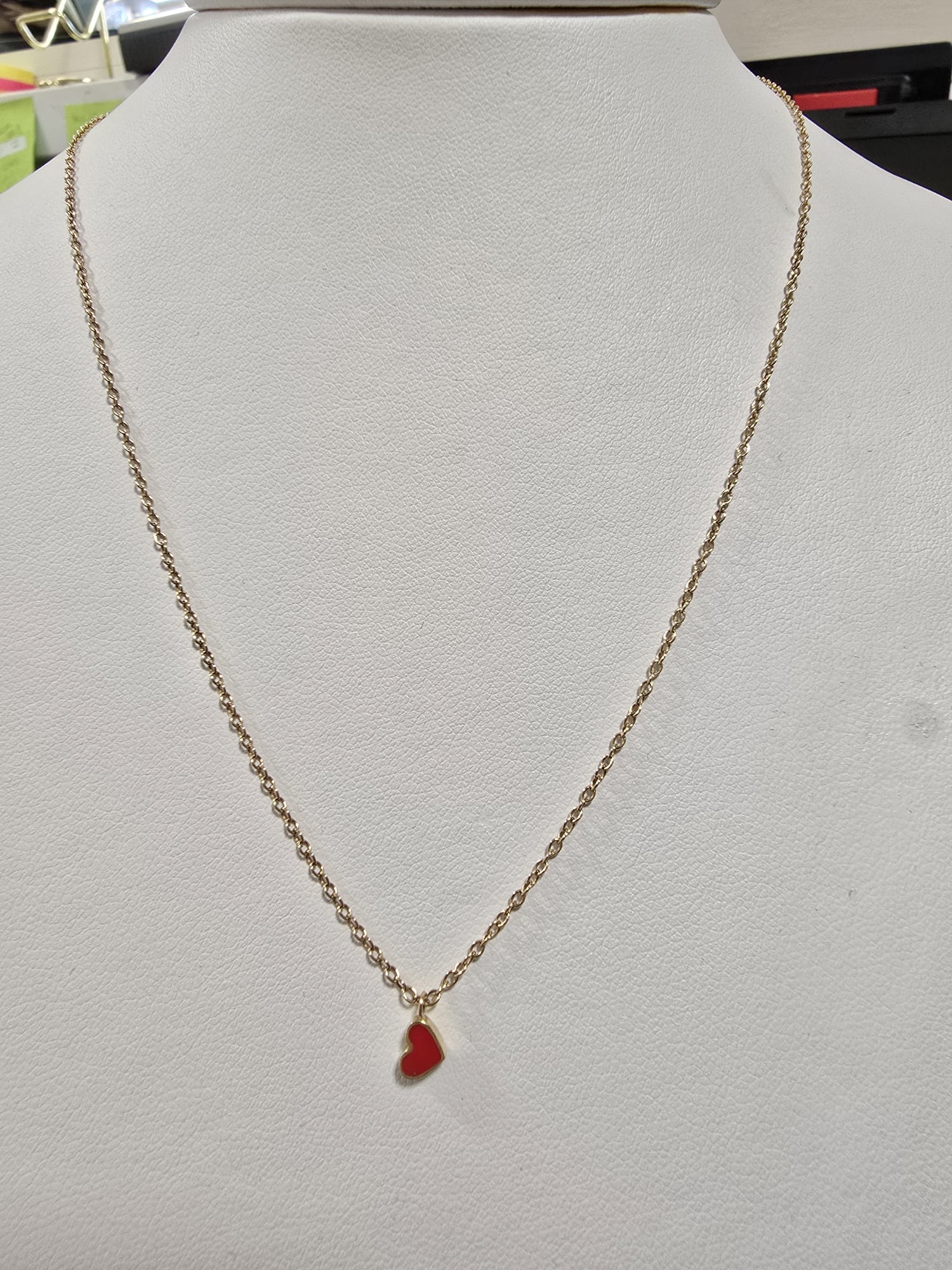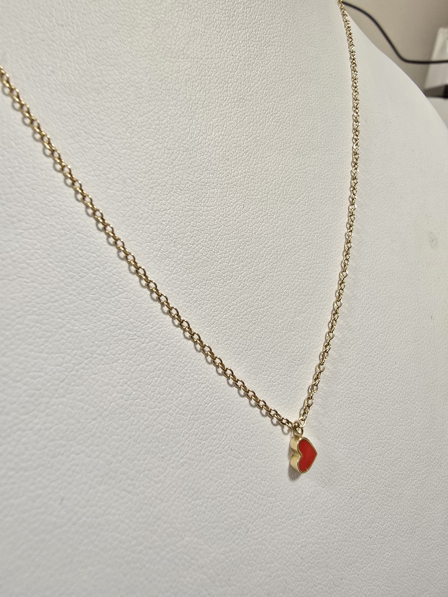 Collana oro giallo 14 Kt con ciondolo sempre in oro giallo a forma di cuoricino.