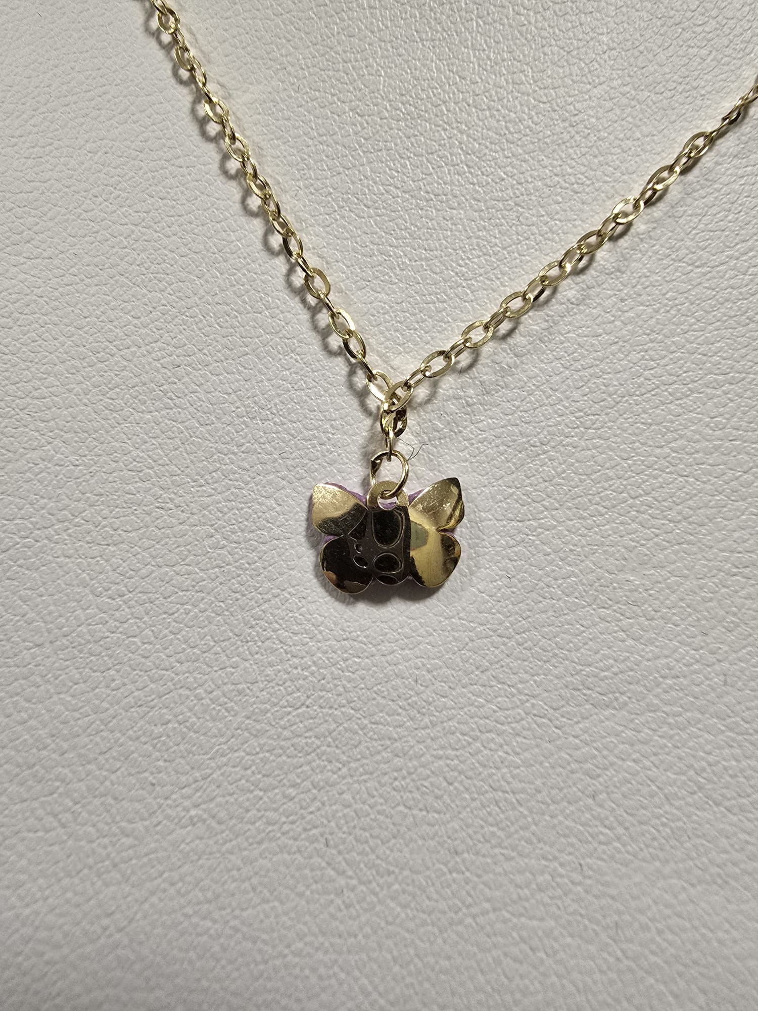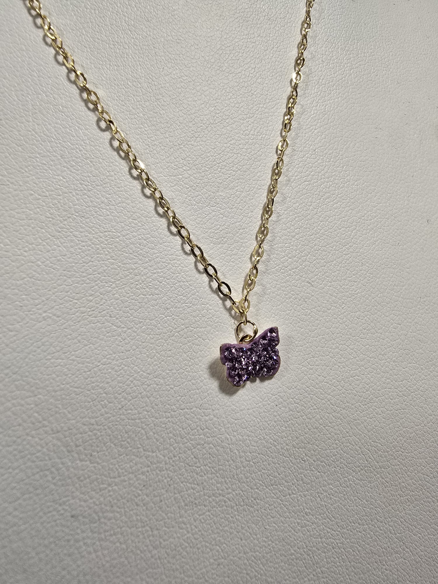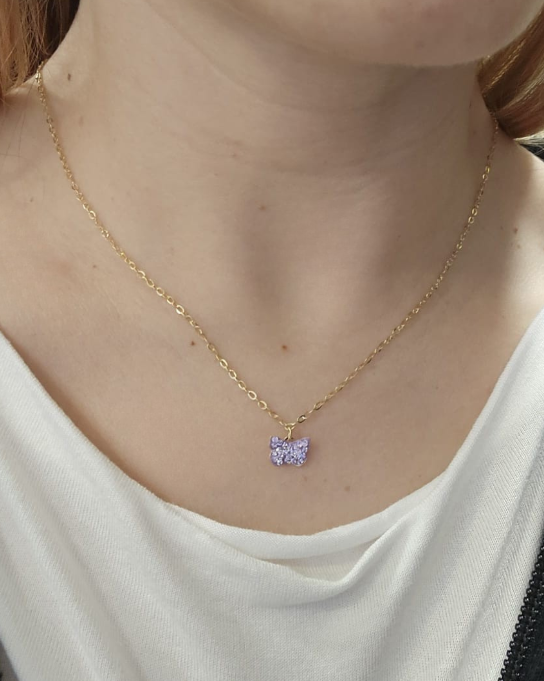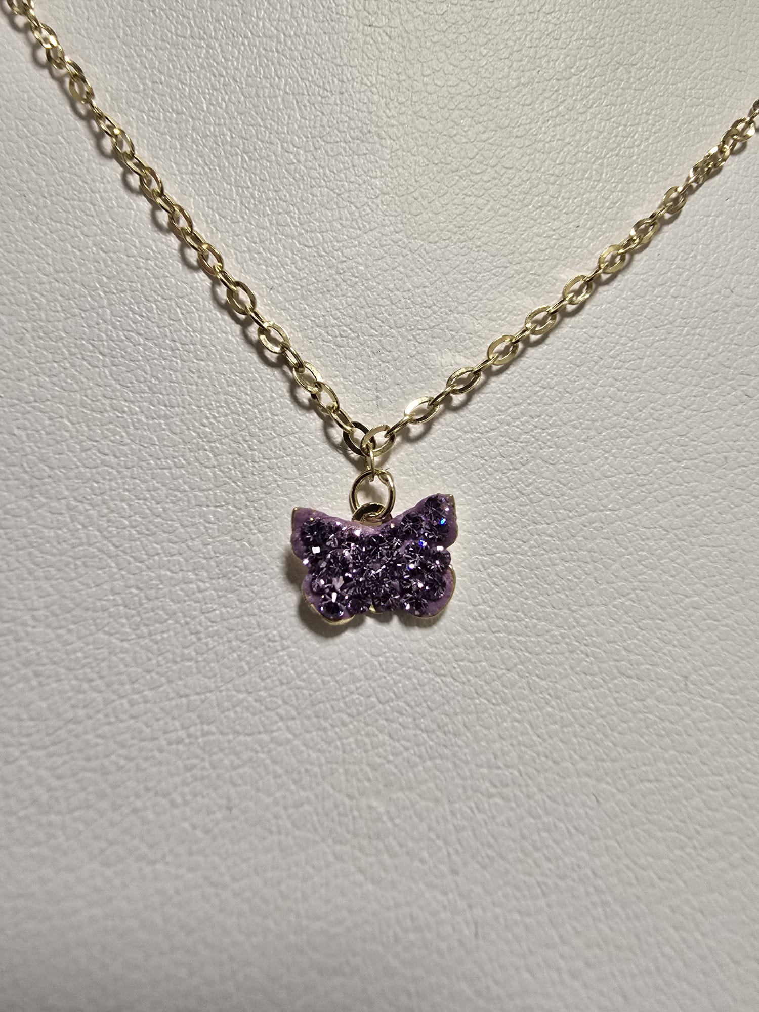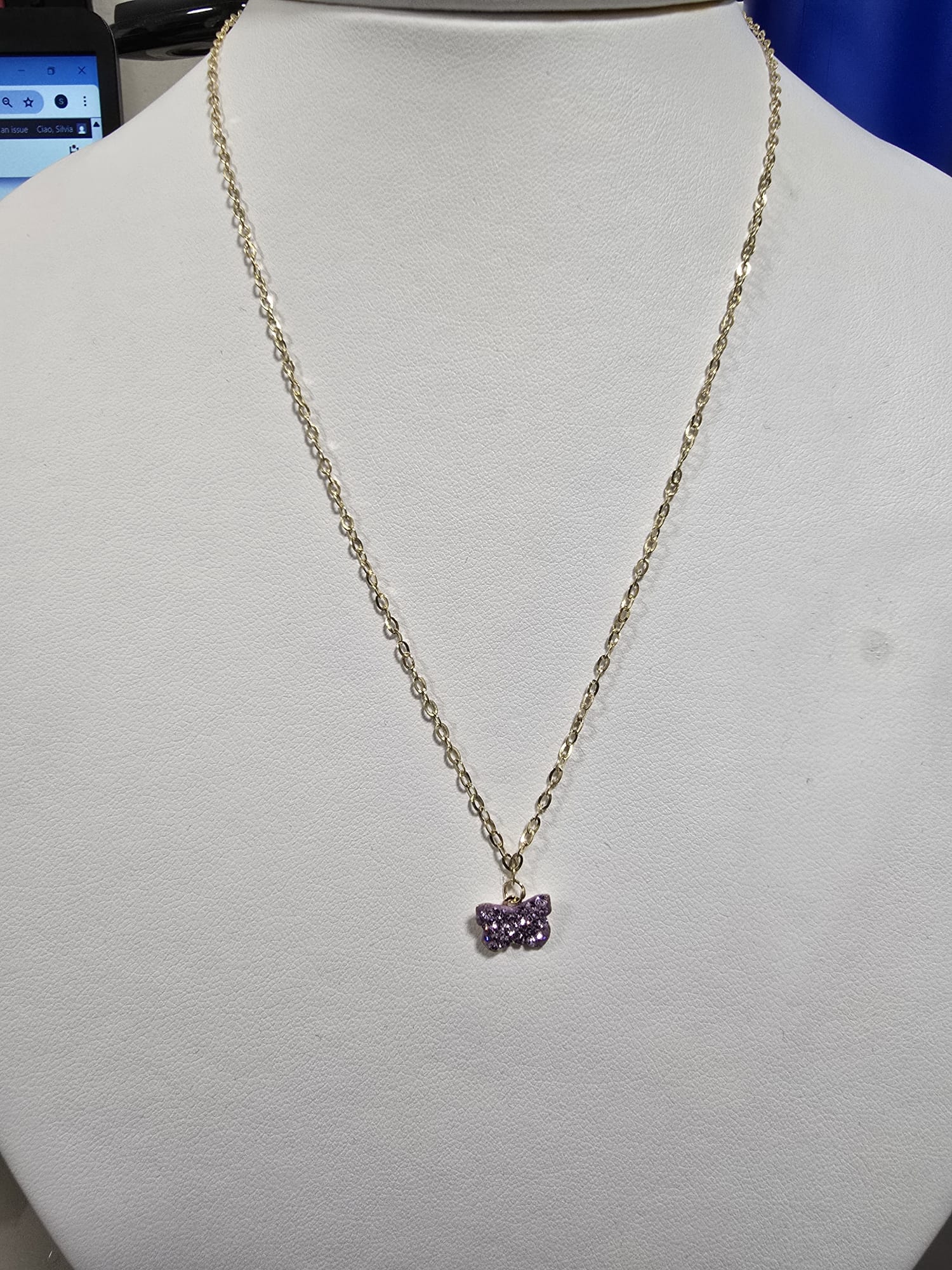Collana Oro Giallo 8 Kt con ciondolo farfallina viola