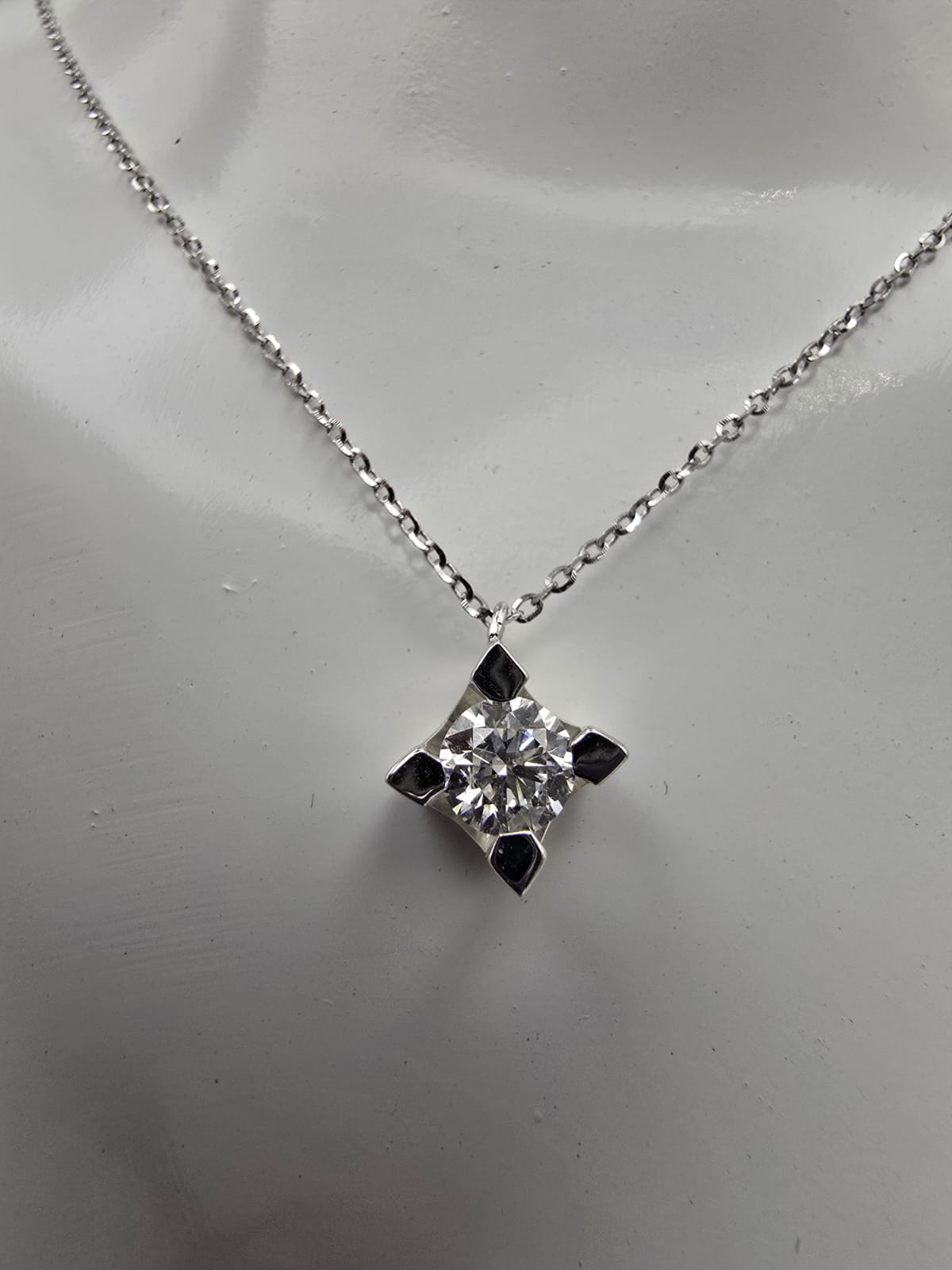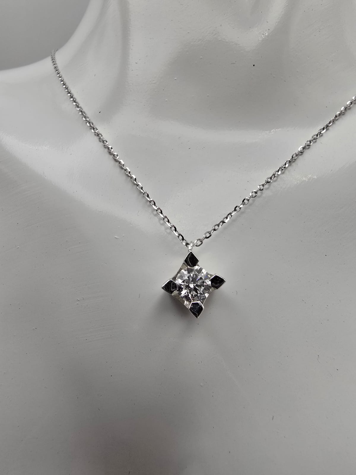 Collana Punto Luce Oro Bianco 18 Kt e Diamante Naturale 0.36 Ct H SI