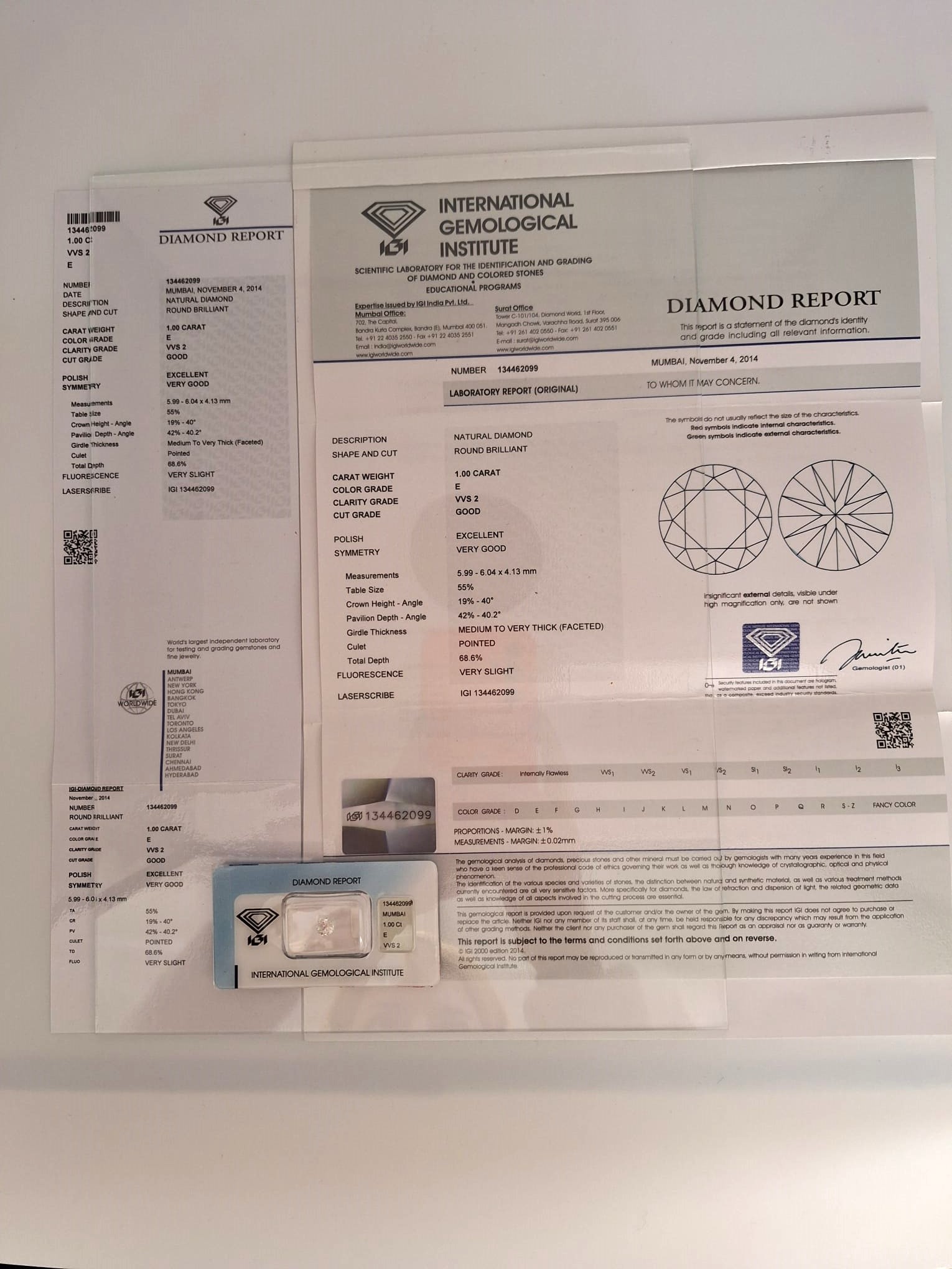Il Diamante si vende completo di blister e certificazione IGI (INTERNATIONAL GEMOLOGICAL INSTITUTE).