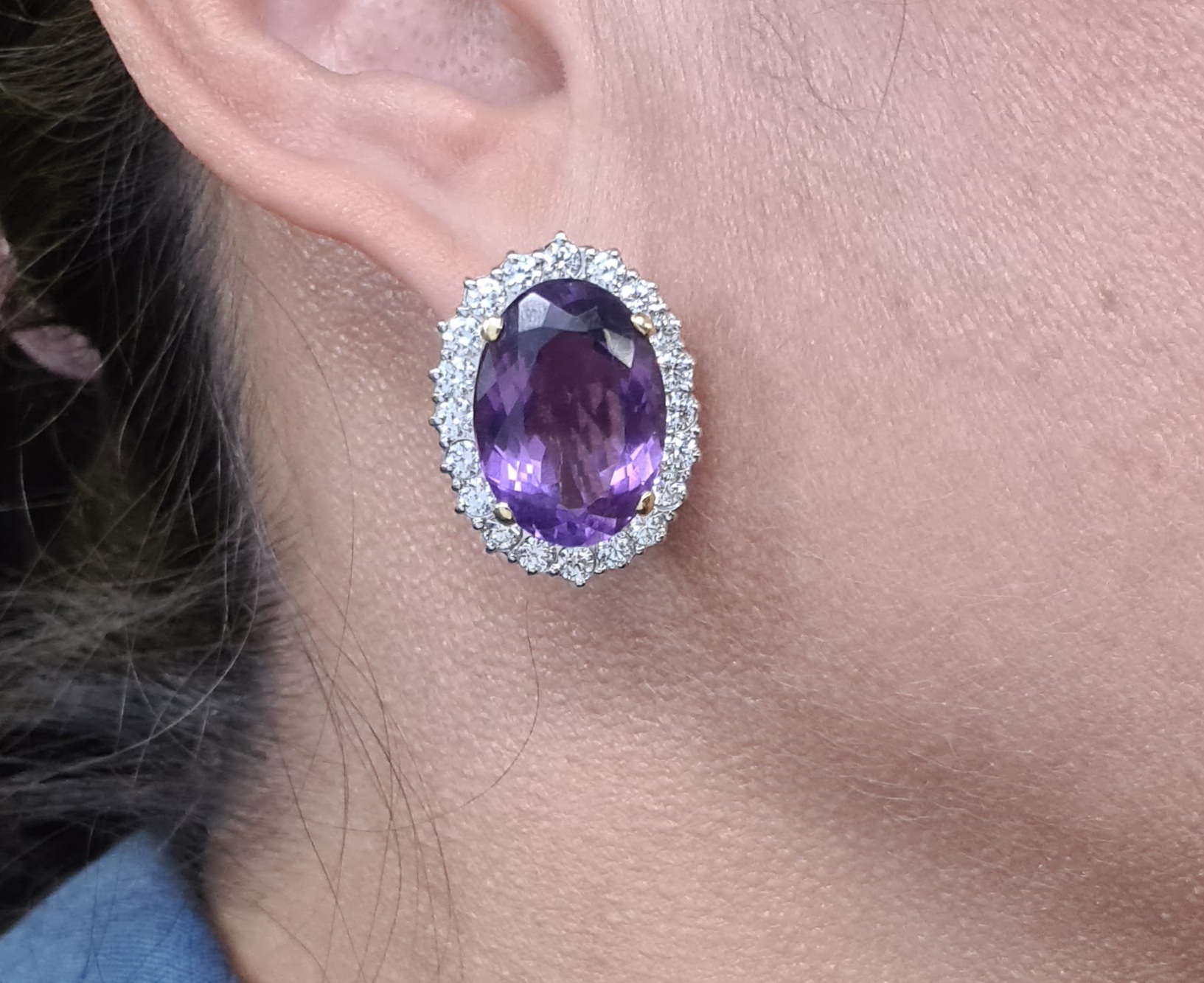 Semplicemente fantastici, la femminilità diventata gioiello, Ametista e diamanti che rendono questi orecchini davvero irresistibili.