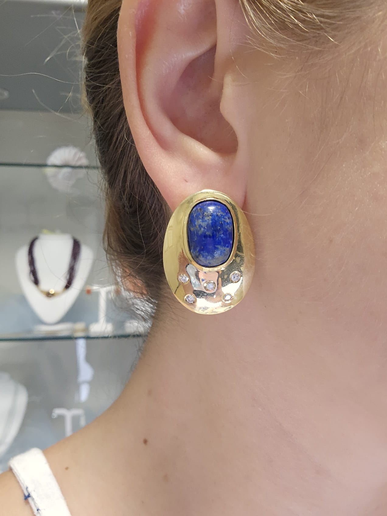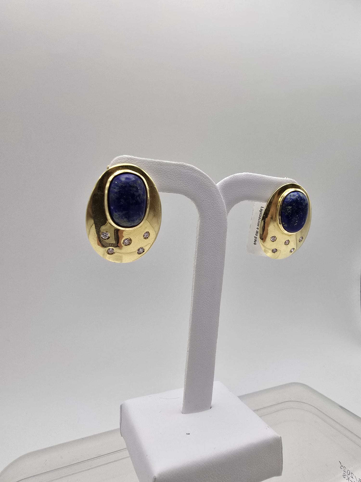 Orecchini Oro Giallo 18 Kt con Lapislazzuli e Diamanti Pavè