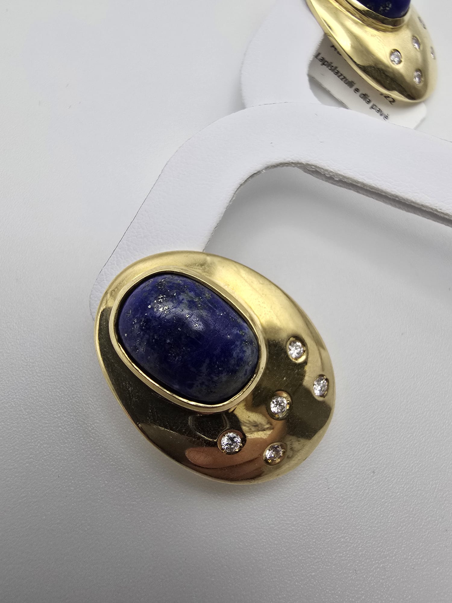 Elegantissimi pendenti con Lapislazzuli Naturali illuminati da Diamanti Pavè su Oro Giallo 18 Kt.