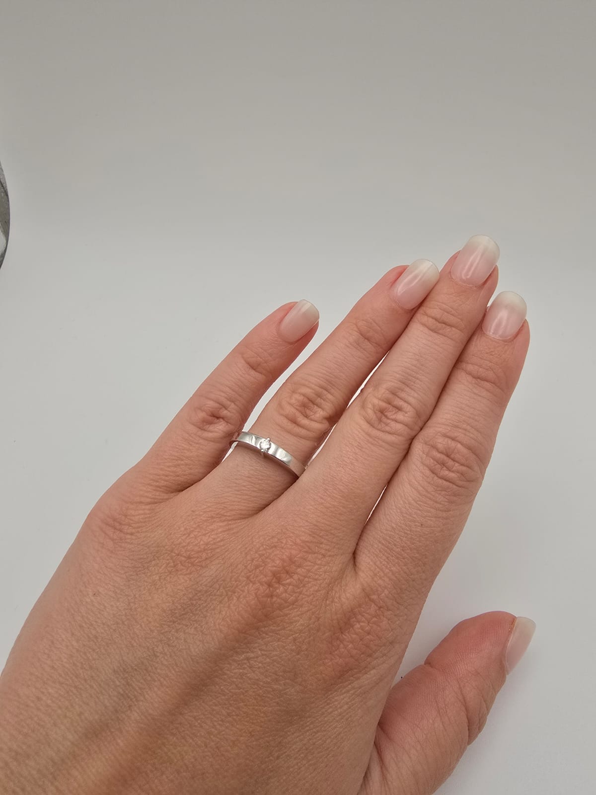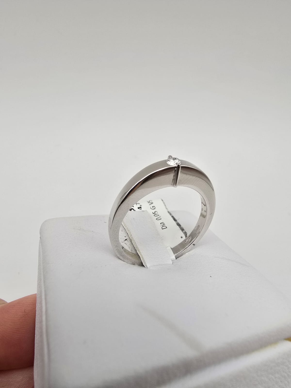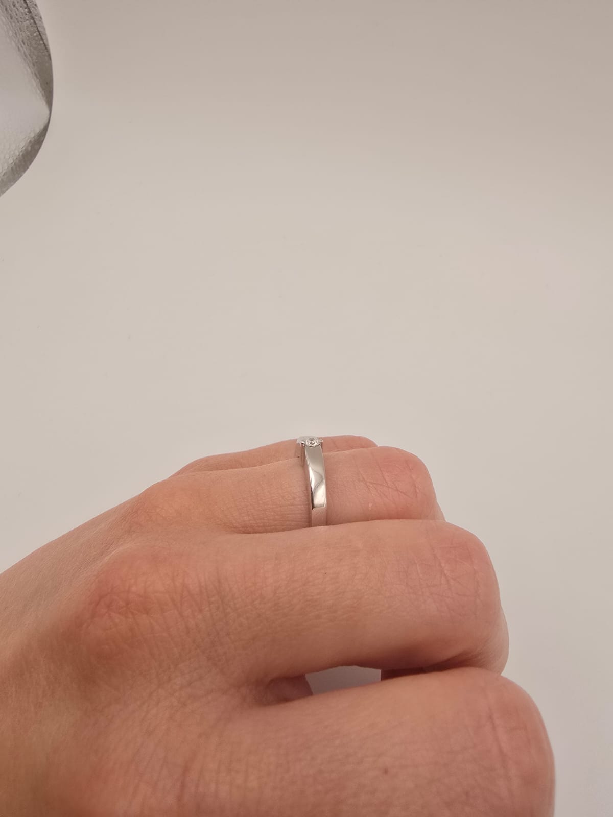 Solitario in Oro Bianco 18 Kt con Diamante 0.05 Ct G VS firmato Leopizzo