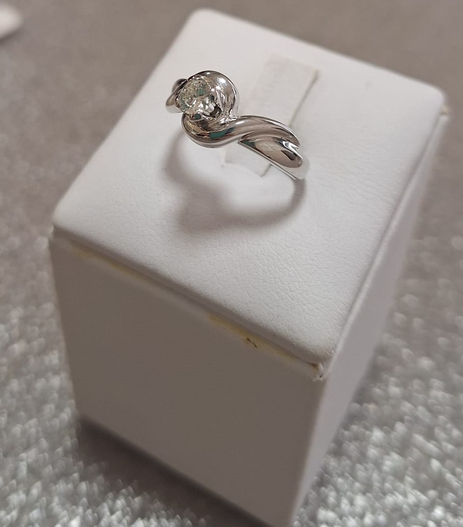 Solitario in oro bianco 18 Kt con Diamante 0.22 Ct