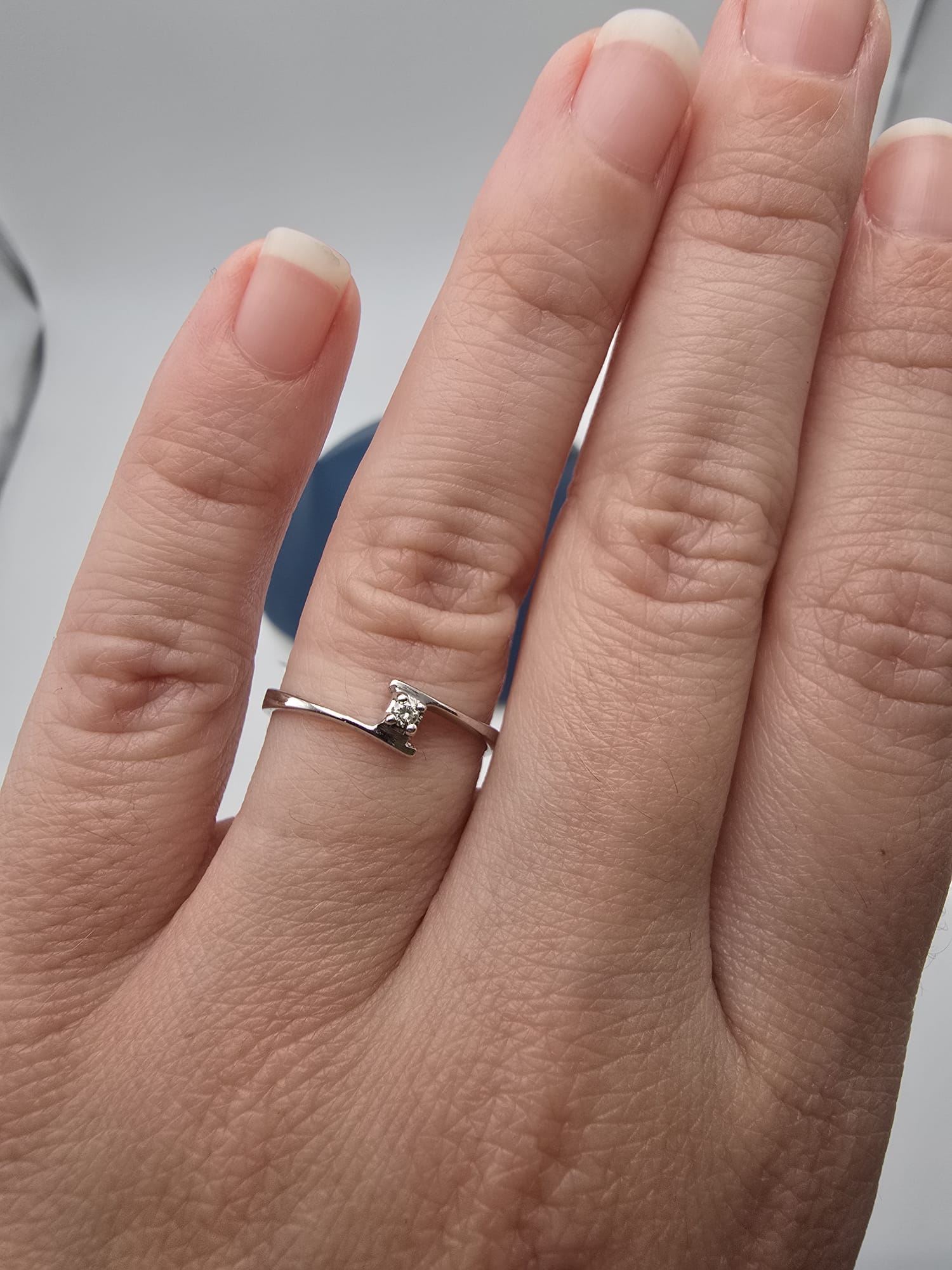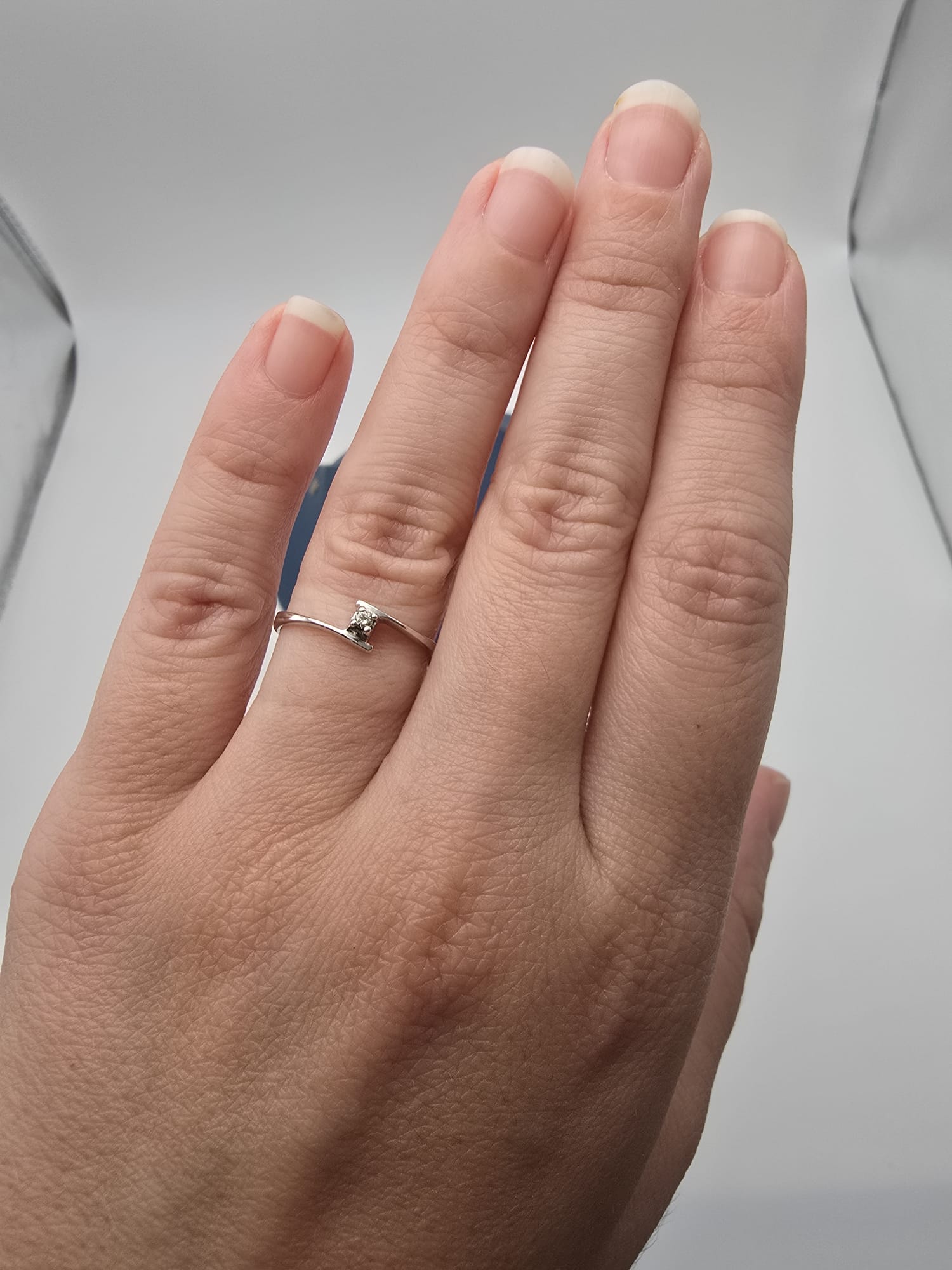 Solitario Oro Bianco 18 Kt e piccolo Diamante Naturale